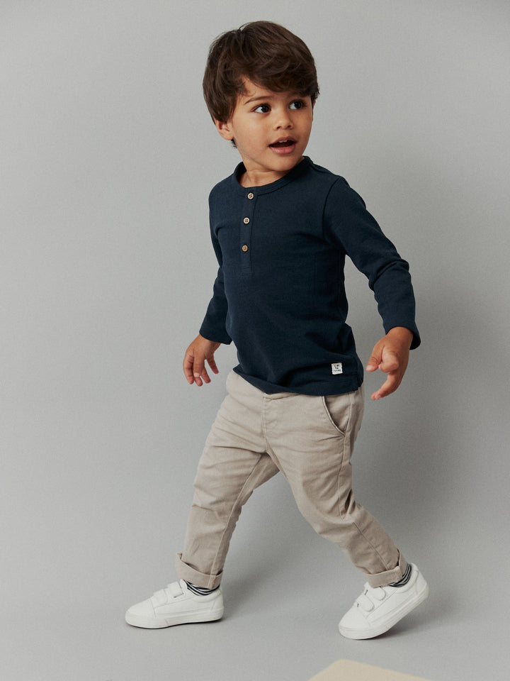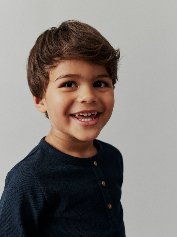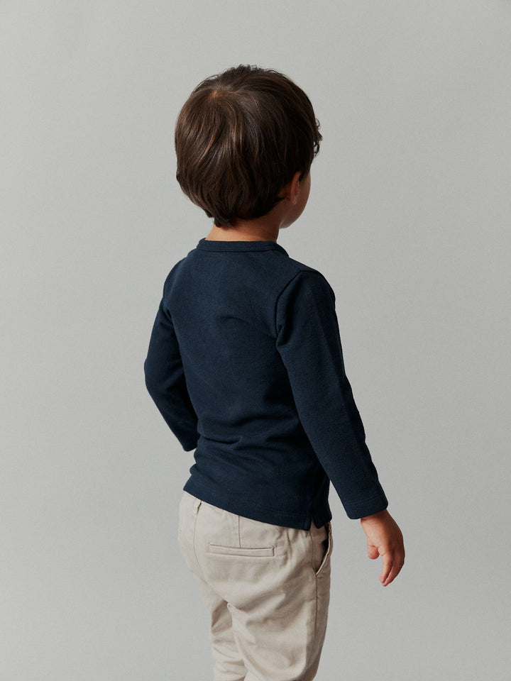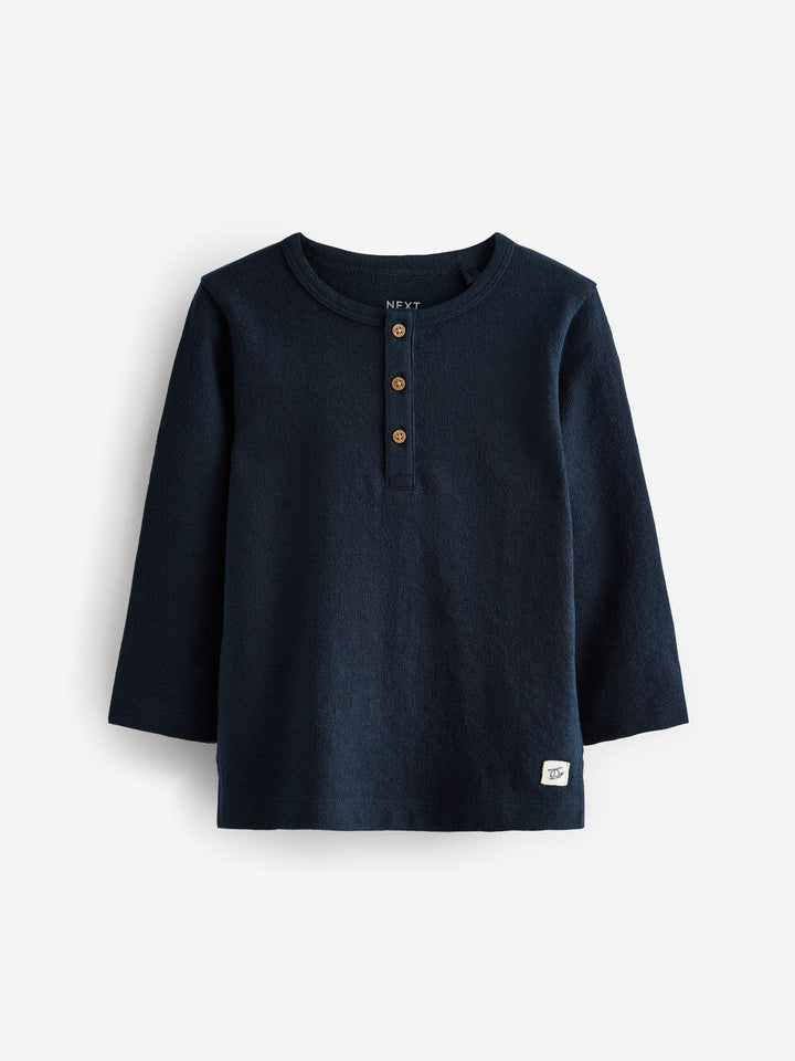 Navy Long Sleeve Henley Neck T-Shirt (3mths-7yrs)