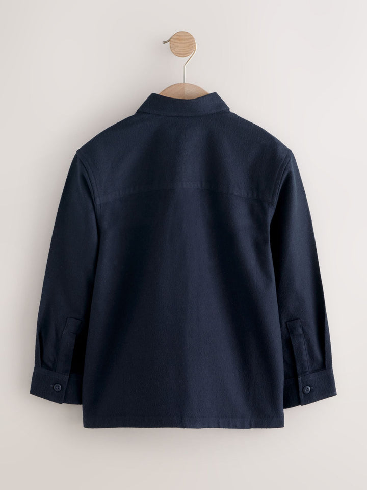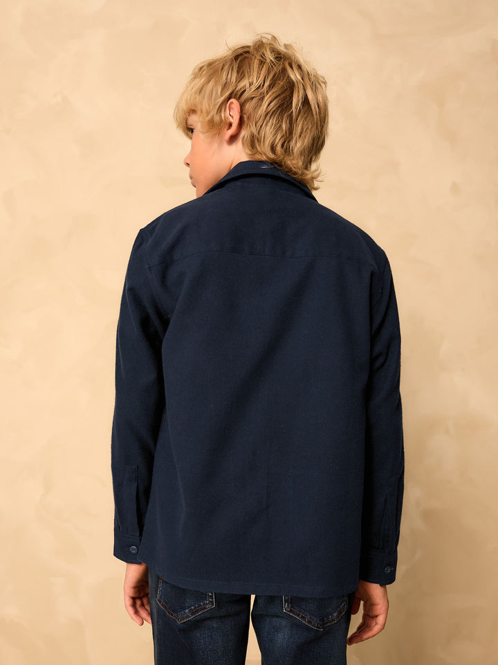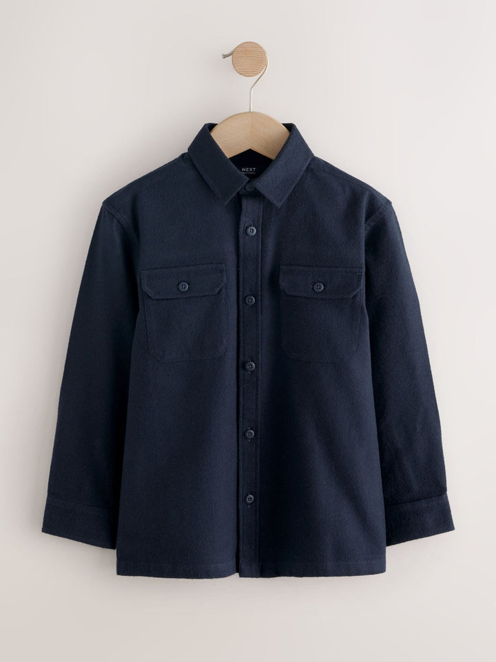 Navy Long Sleeve Plain Double Pocket Shirt (3-16yrs)