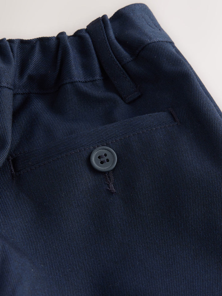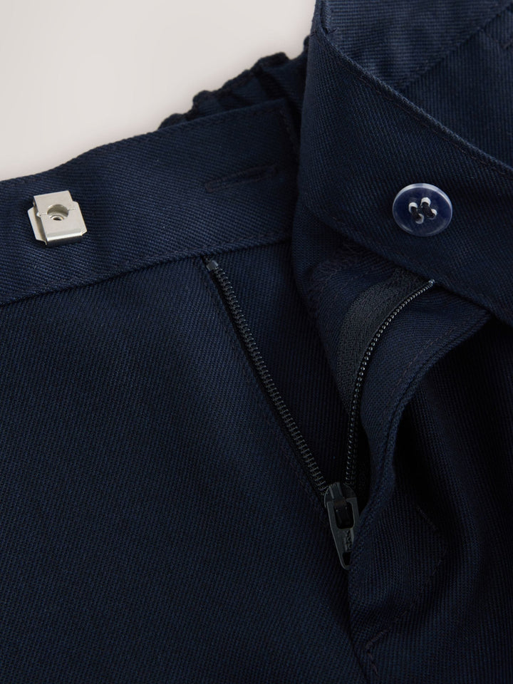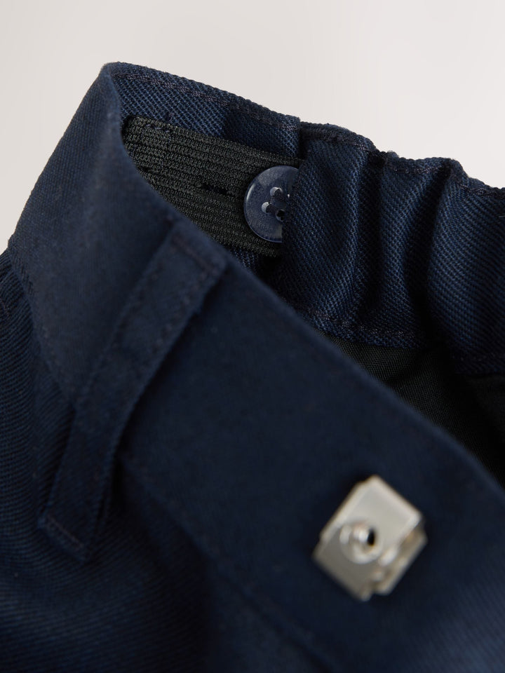 Stay smart all year round with these smart navy school trousers. Available for taller children, the longer length and adjustable waist provide a comfortable and customisable fit. Crafted from easy-iron fabric, they're a practical and durable choice for the school day. Available in longer lengths Adjustable waist Easy-iron fabric Belt loops Zip and button fly fastening Machine washable. 65% Recycled polyester, 35% LENZING™ ECOVERO™ Viscose. Country of Origin: Bangladesh