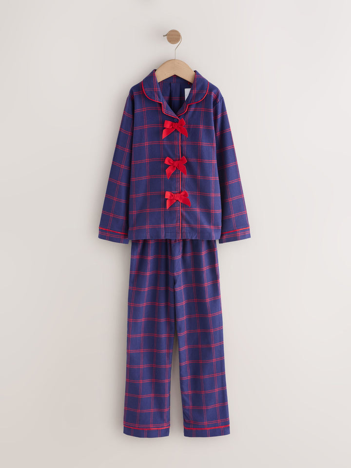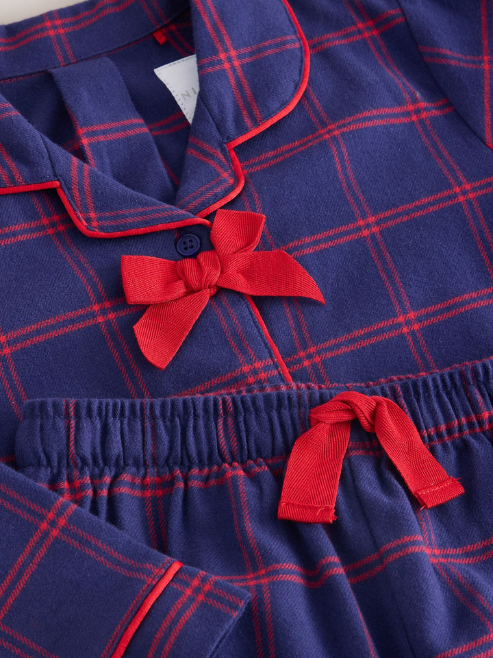 Navy/Red Bow Woven Button Through Pyjamas (4-16yrs)