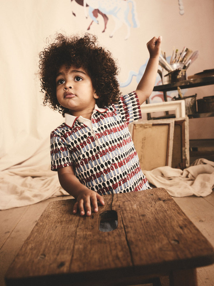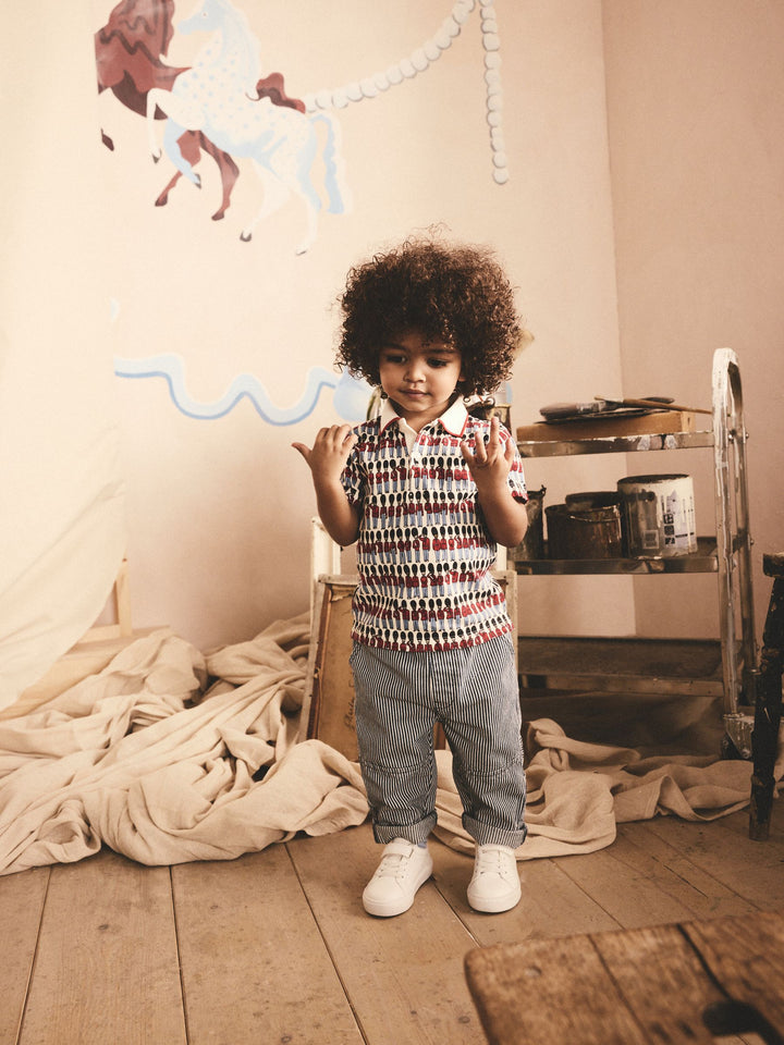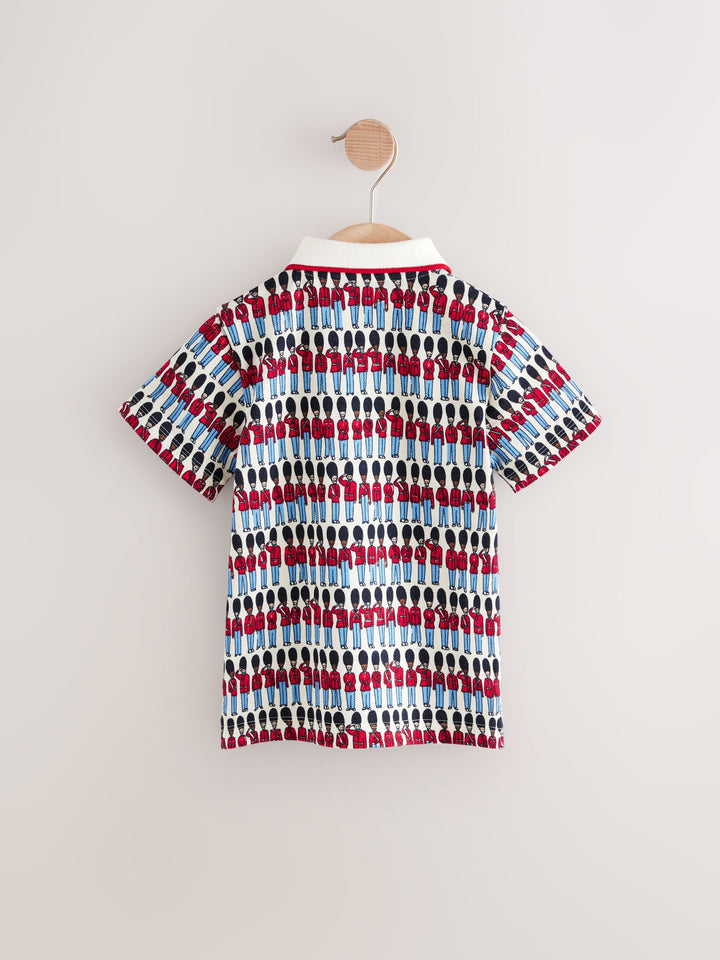Navy/Red Cath Kidston 100% Cotton All-Over-Print Short Sleeve Polo Shirt (3mths-7yrs)