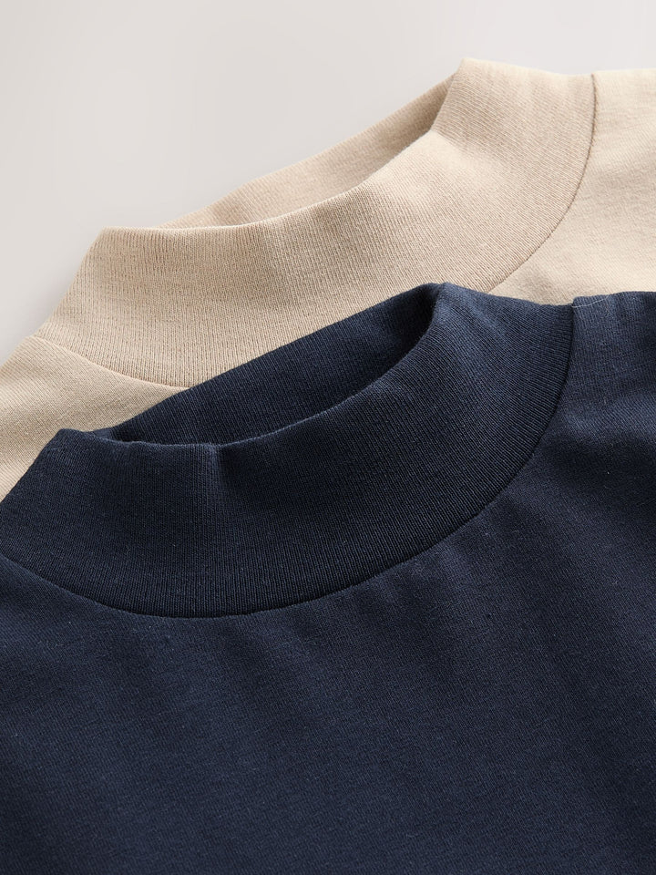 Navy/Stone Long Sleeve Turtle Neck T-Shirts 2 Pack (3mths-7yrs)