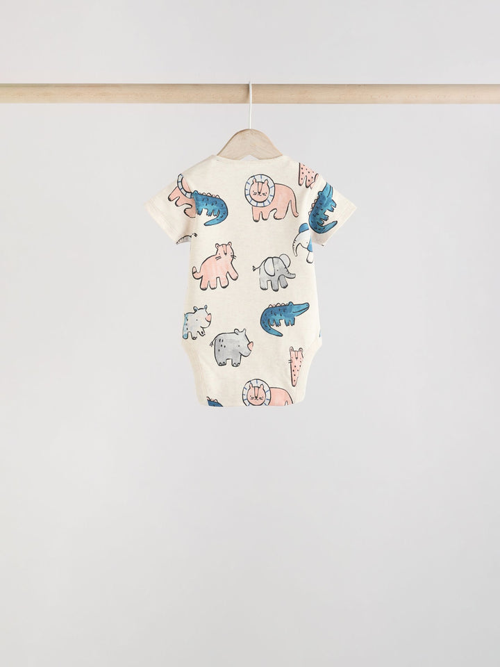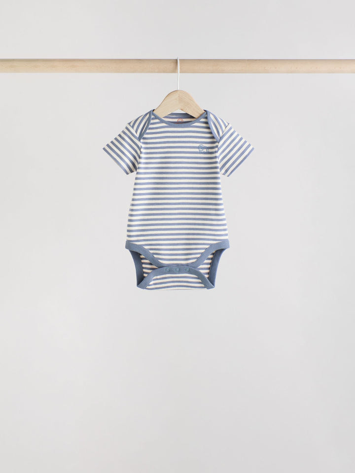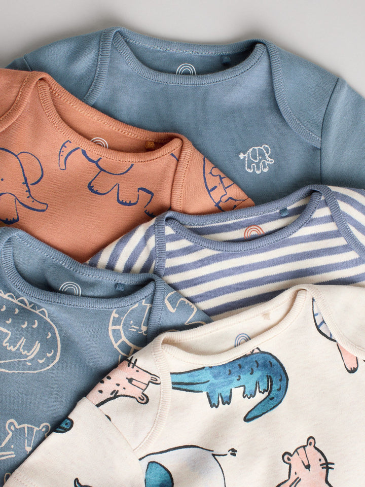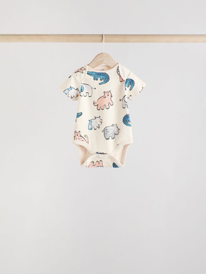 This 5-pack of bodysuits are made from pure cotton, in a short sleeve shape with a popper fastening between the legs for easy wear, decorated in a selection of prints. 5-pack 100% cotton Popper fastening All-over prints Machine washable. 5 x Bodysuit 100% Cotton. Country of Origin: India Warning: Keep away from fire and flames.