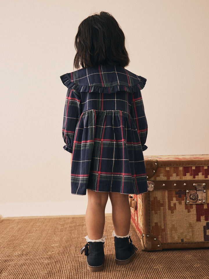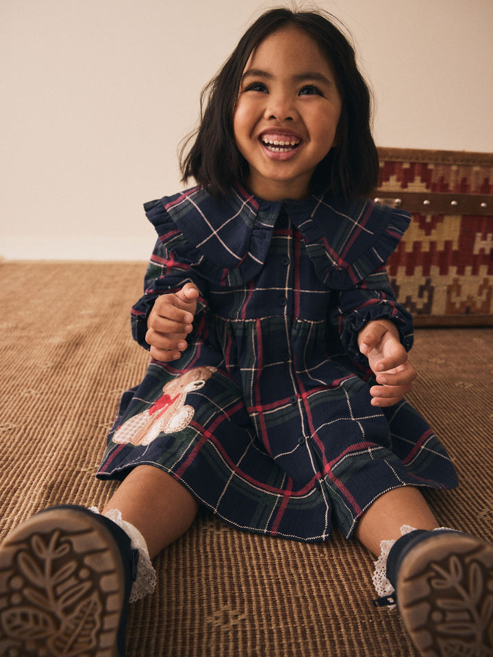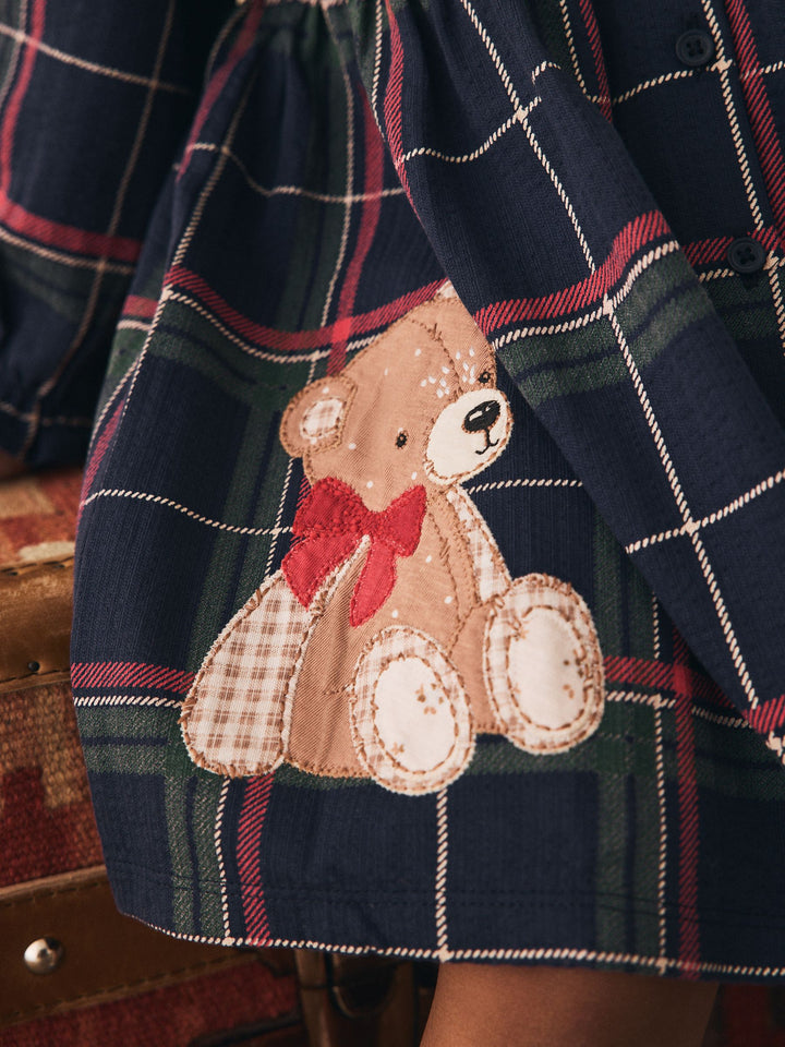 Navy Teddy Bear Long Sleeve Collared Dress (3mths-7yrs)