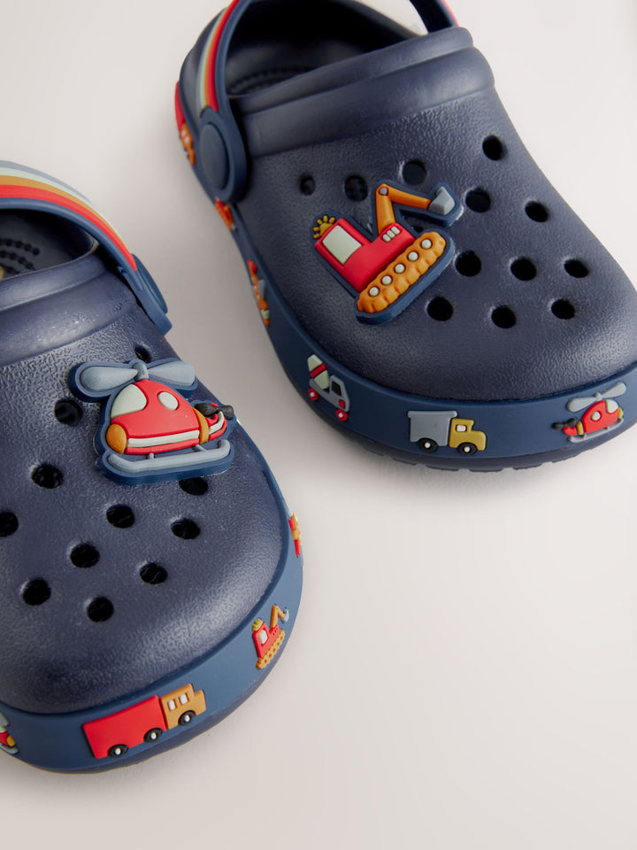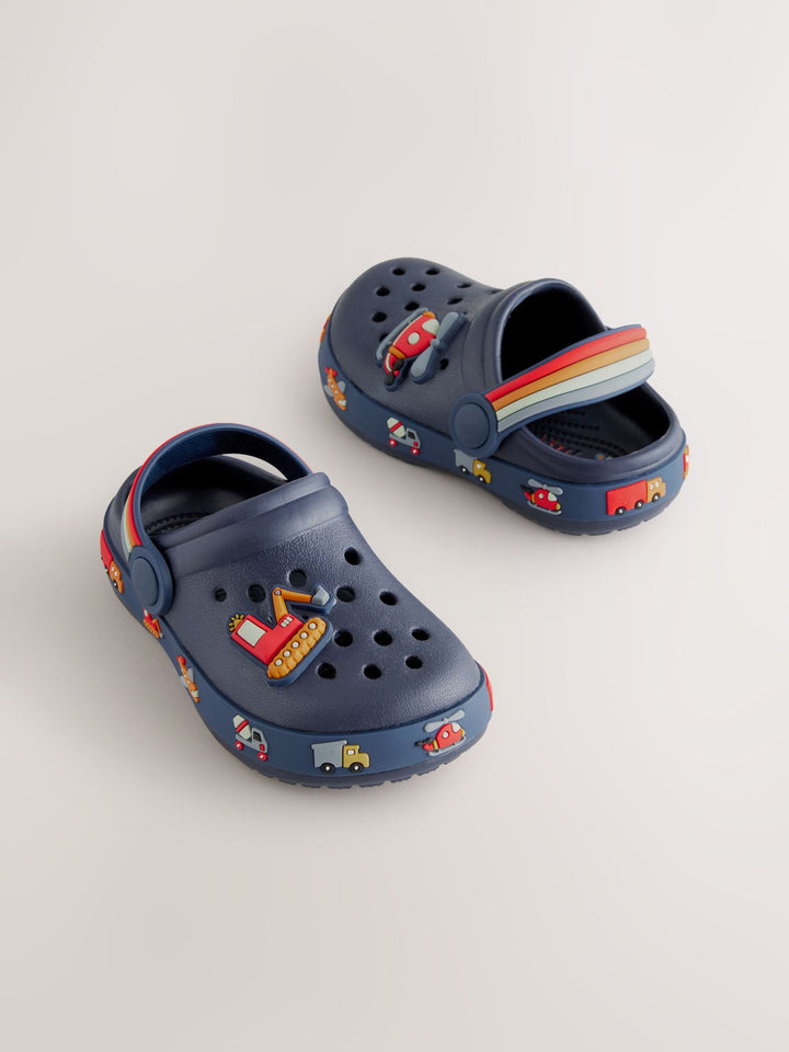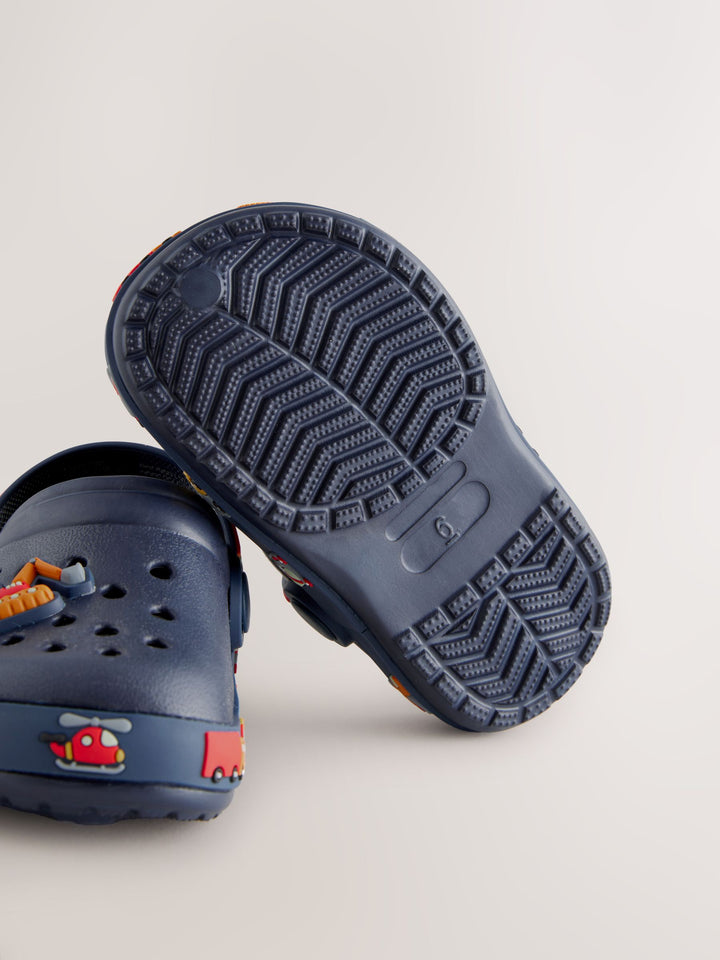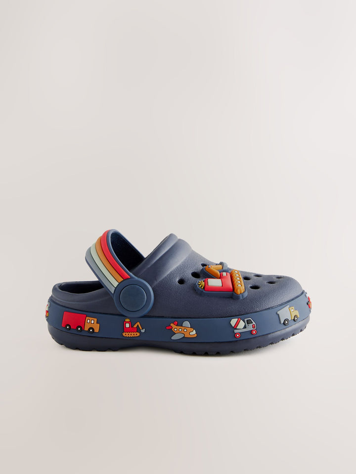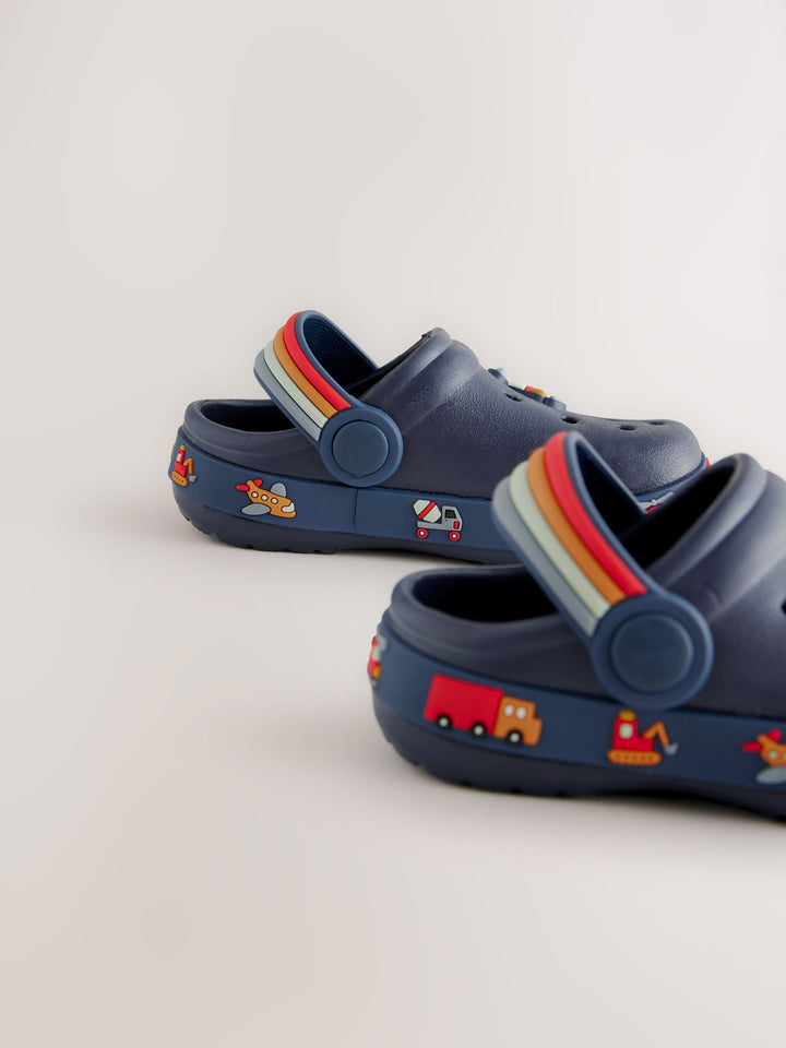 Perfect for busy little feet, our kid's character clogs bring joy to every step. Featuring a fun navy transport design with adjustable strap so they can easily slip on and hold onto the heel. Perfect for everyday adventures. Character clogs Adjustable strap Lightweight Upper - Other Materials, Lining & Sock - Other Materials, Sole - Other Materials. Country of Origin: China