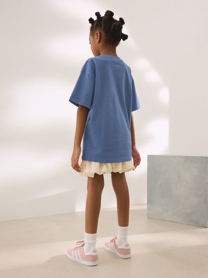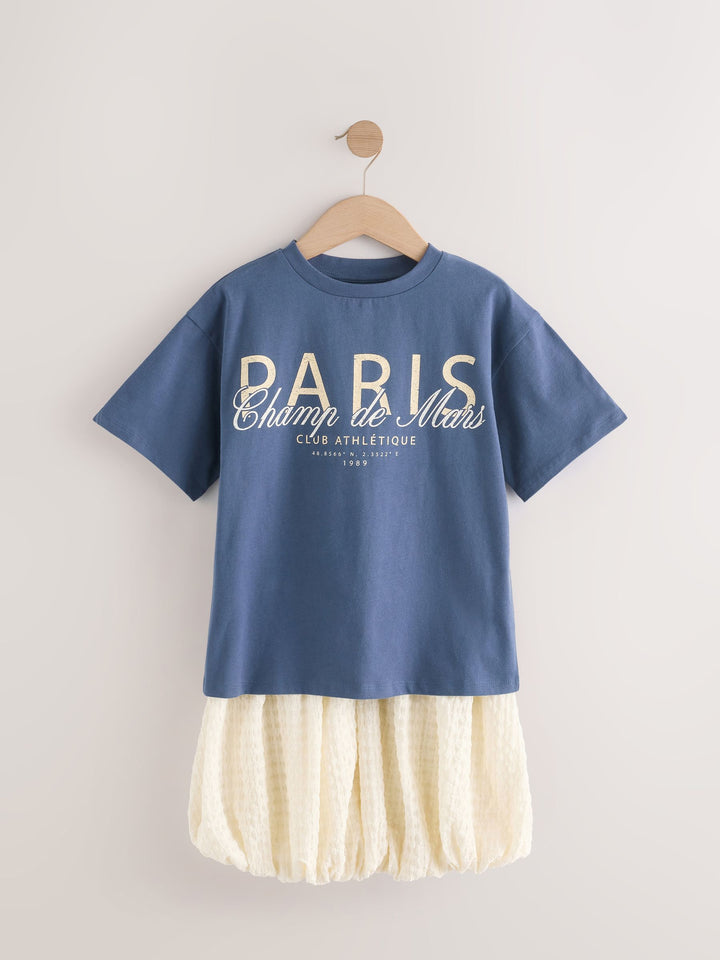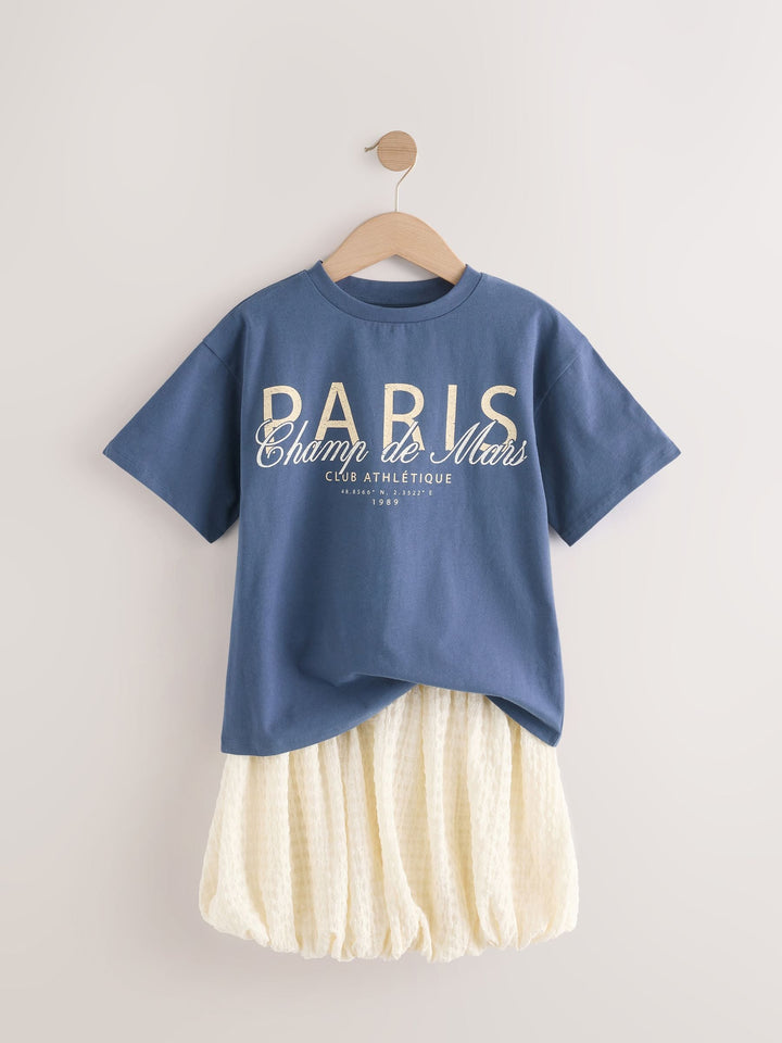 Navy/White Oversized T-Shirt and Bubble 100% Cotton Skirt Set (3-16yrs)