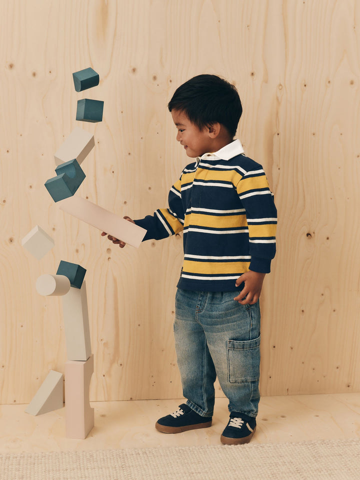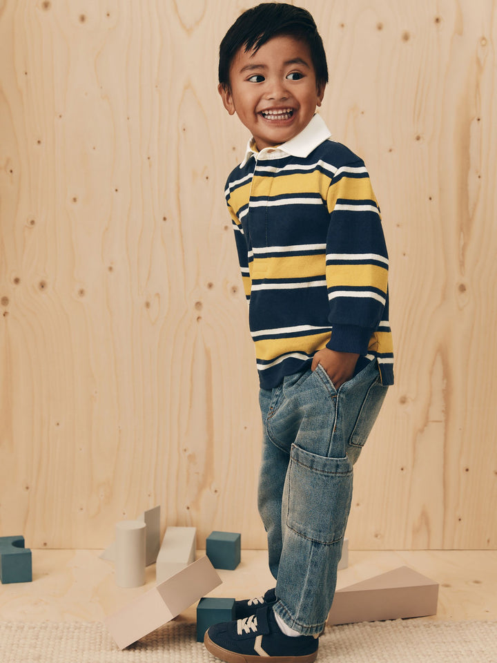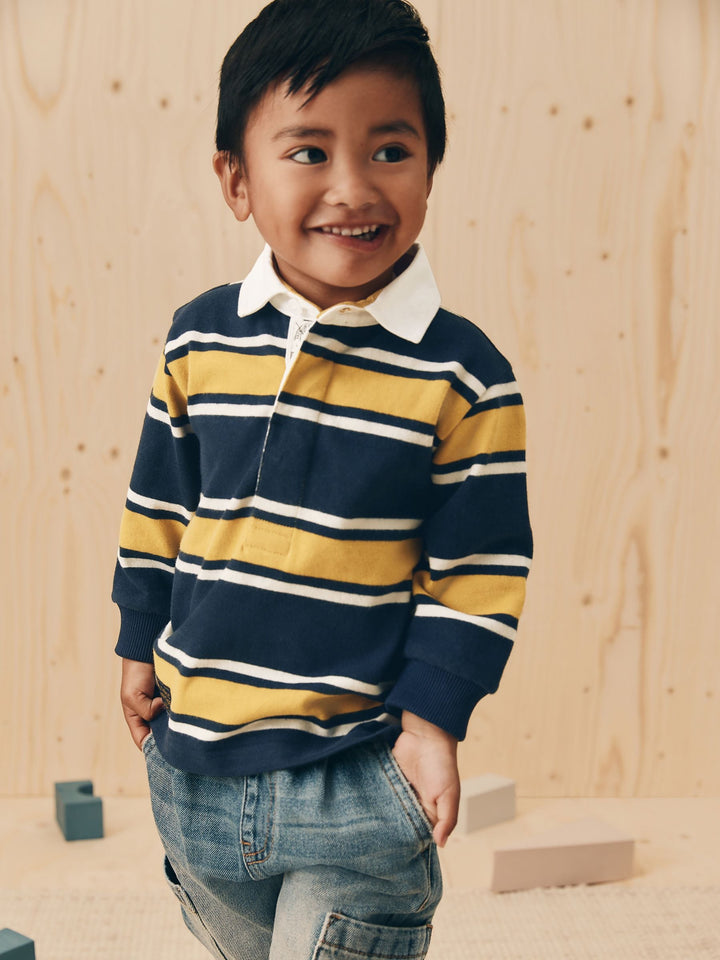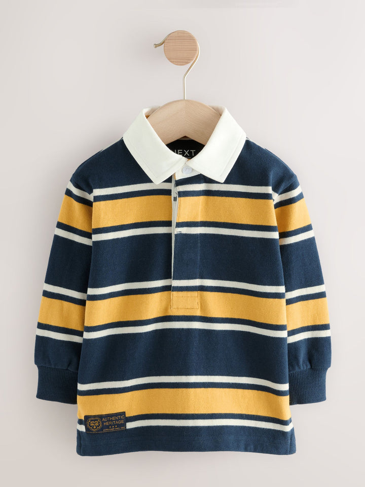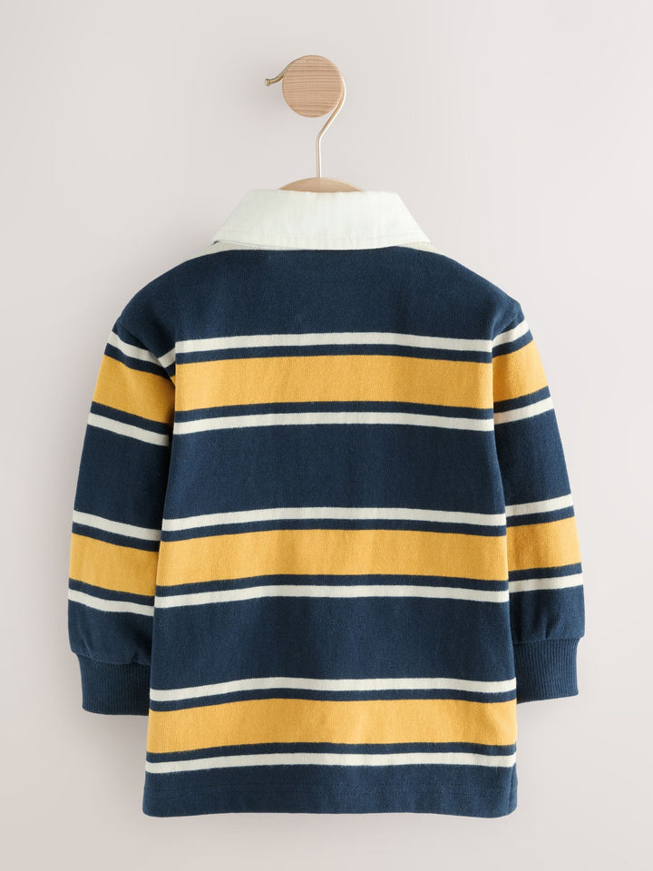 Navy/Yellow Striped Long Sleeve Rugby Polo Shirt (3mths-7yrs)