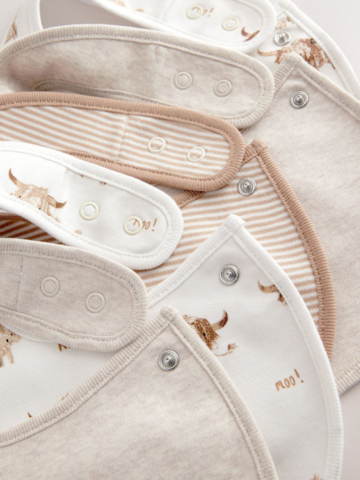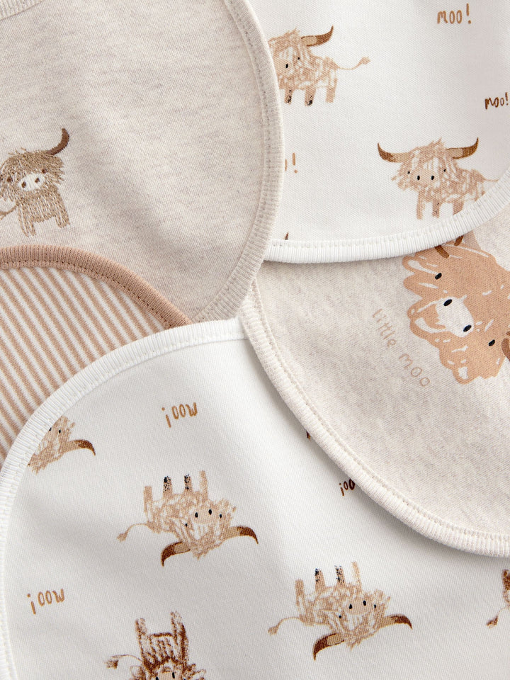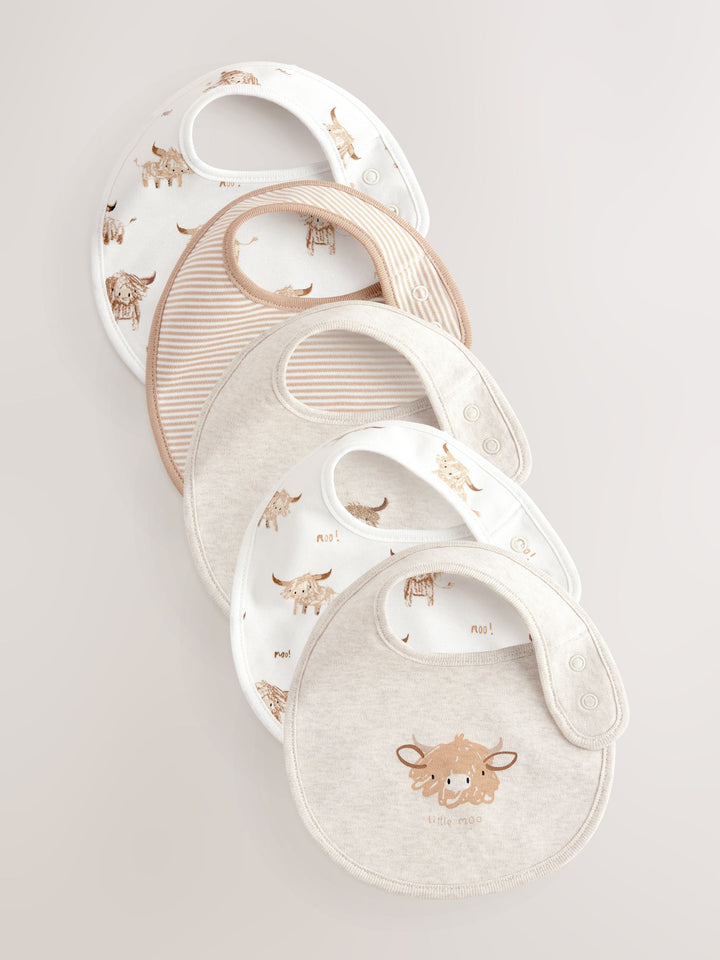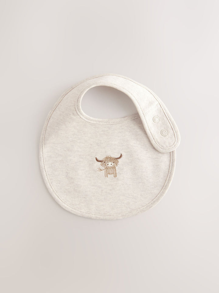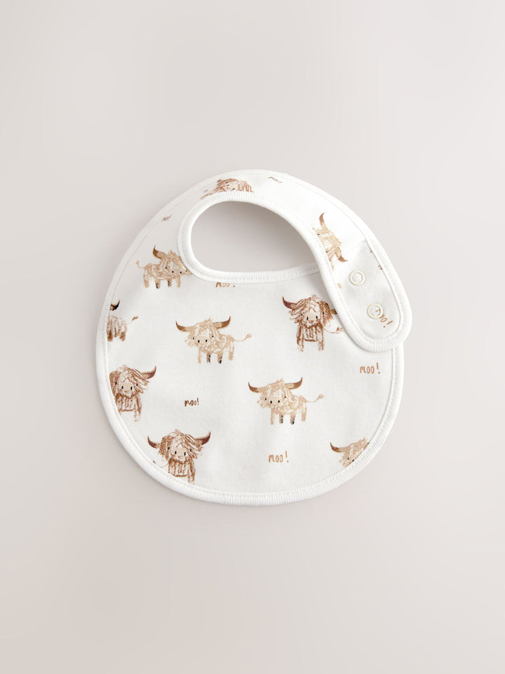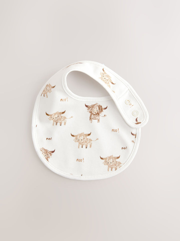 Make feeding time a lot more fun and practical with this 5 pack of Hamish the Highland cow bibs. In a soft cotton blend, each piece is complete with popper fastening and adorned in a cute character design. 5 pack Super soft cotton blend Hamish designs Popper fastening Machine washable. 5 x Bib Main 100% Cotton. Backing 77% Cotton, 23% Polyester. Country of Origin: Sri Lanka Warning: Keep away from fire and flames.