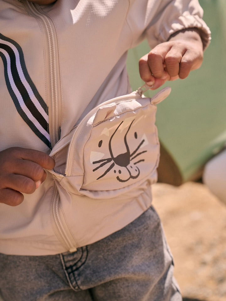 Perfect for unpredictable weather, this brown shower-resistant and lightweight cagoule jacket is easy to pack for adventures, featuring a built-in side bag with a zippered fastening and a cat design, a soft jersey lining, a set-in hood and an elasticated hems. Shower resistant Lightweight Hooded Zip fastening Jersey lining Built-in side bag Elasticated hems Machine washable. Main 100% Recycled polyester. Body Lining 100% Cotton. Sleeve Lining 100% Recycled polyester. Country of Origin: Myanmar