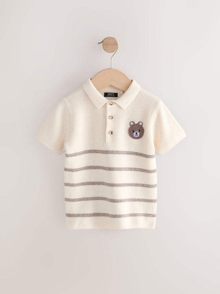 Neutral Bear Button Neck Knitted 100% Cotton Polo Shirt (3mths-7yrs)