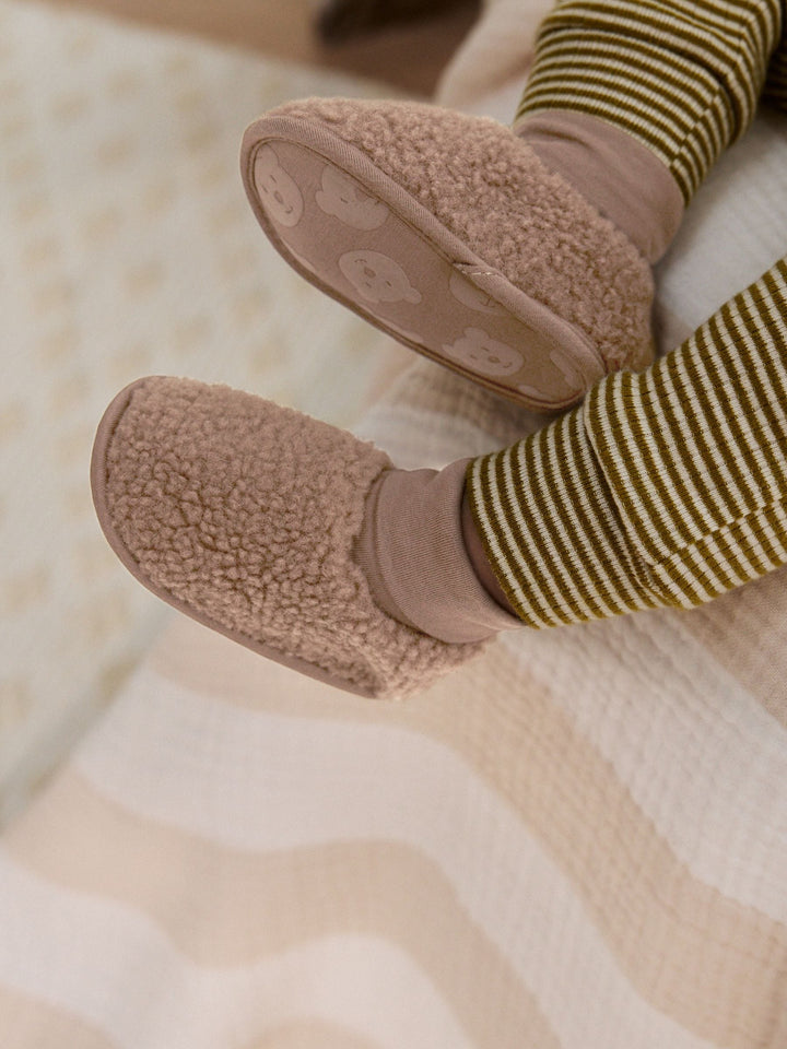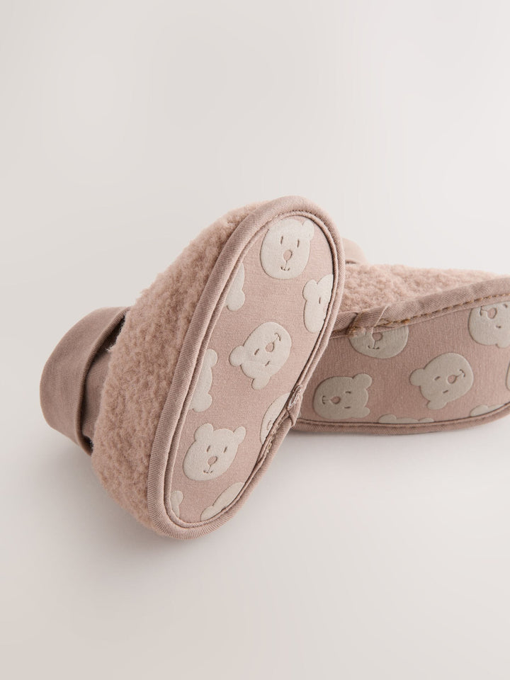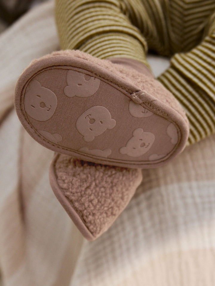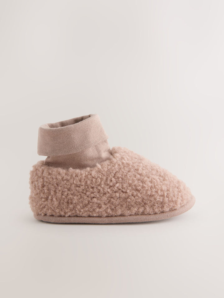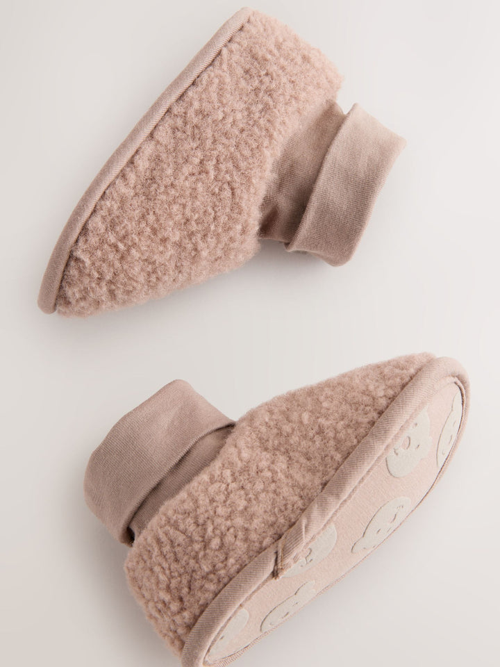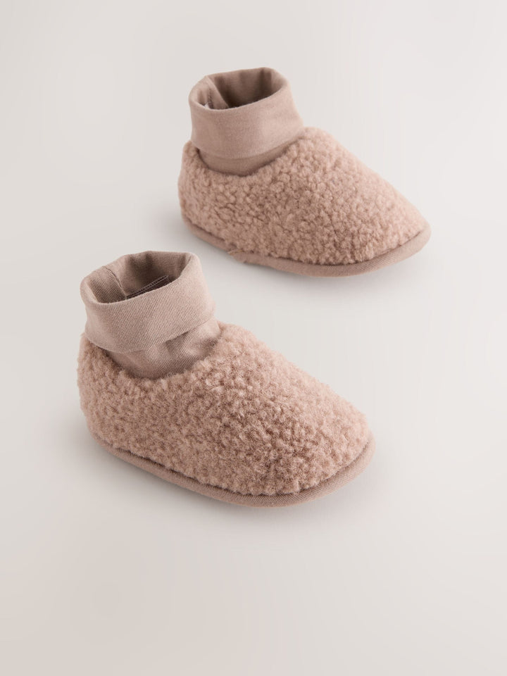 Neutral Brown Borg Baby Sock Top Boots (0-2mths)