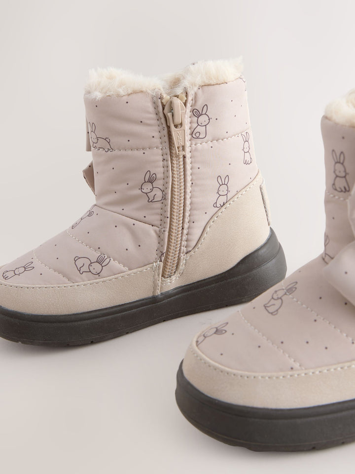 Neutral Bunny Water Repellent Quilted Bow Boots