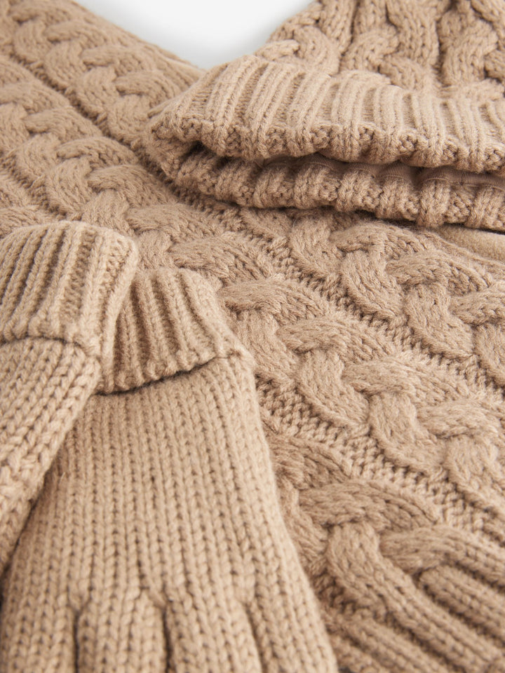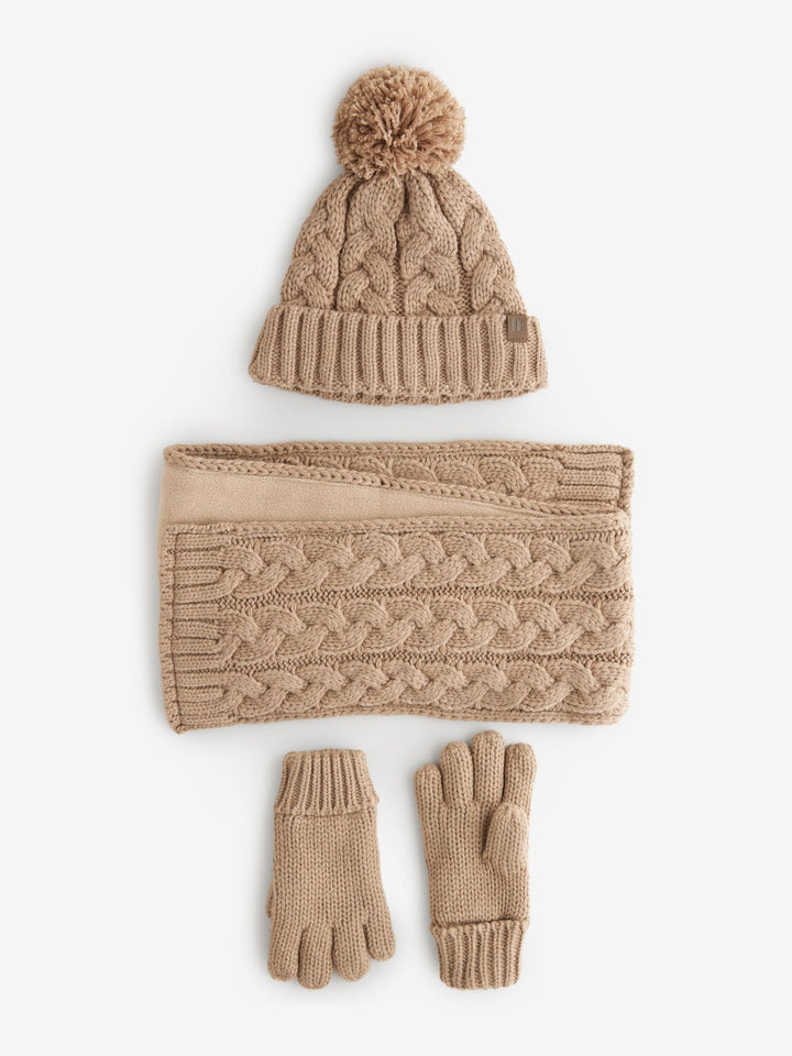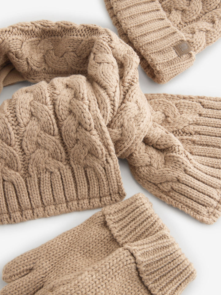 Neutral Cable Knit Hat Gloves & Scarf 3 Piece Set (3-16yrs)