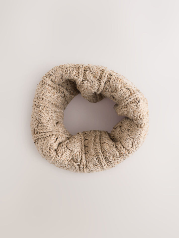 In a cable knit design, this cosy snood is the perfect accessory for him to style with his winter looks, finished with a soft fleece lining. Cable knit design Fleece lining Perfect for winter Main 58% Recycled polyester, 42% Acrylic. Lining 100% Polyester. Country of Origin: China