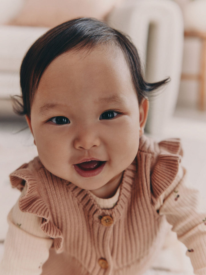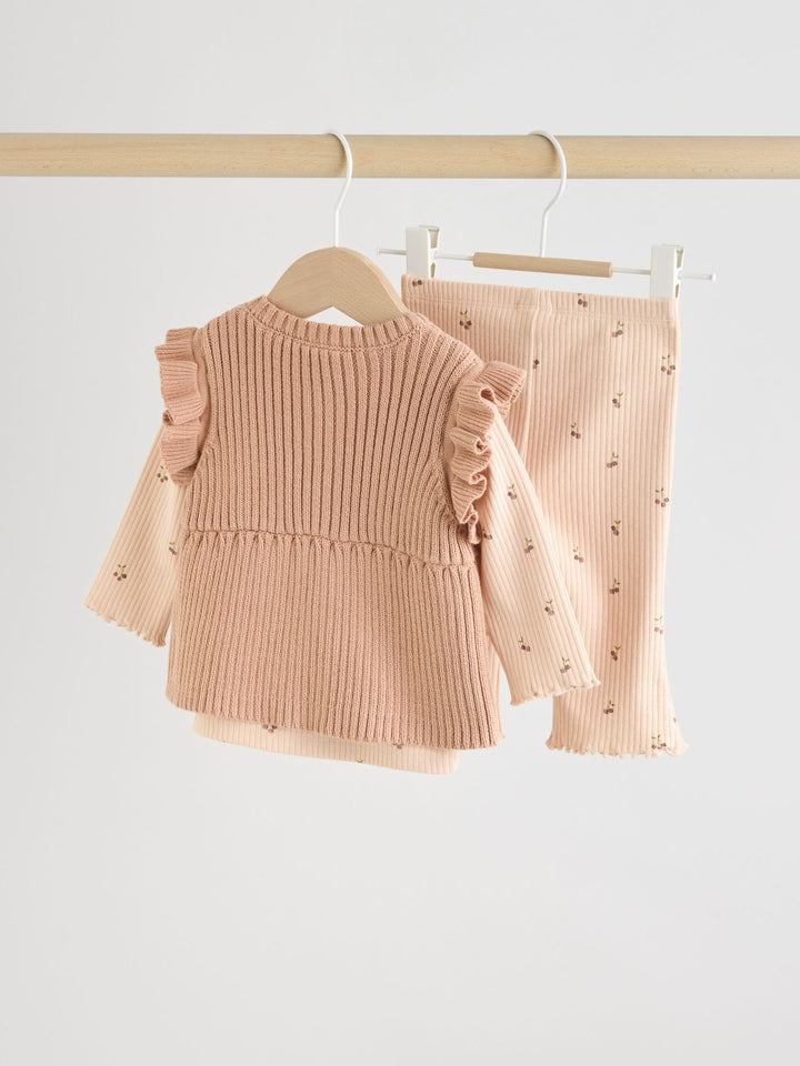 Neutral Cherry Baby Knitted Gilet, Long Sleeve Top and Leggings 3 Piece Set (0mths-3yrs)