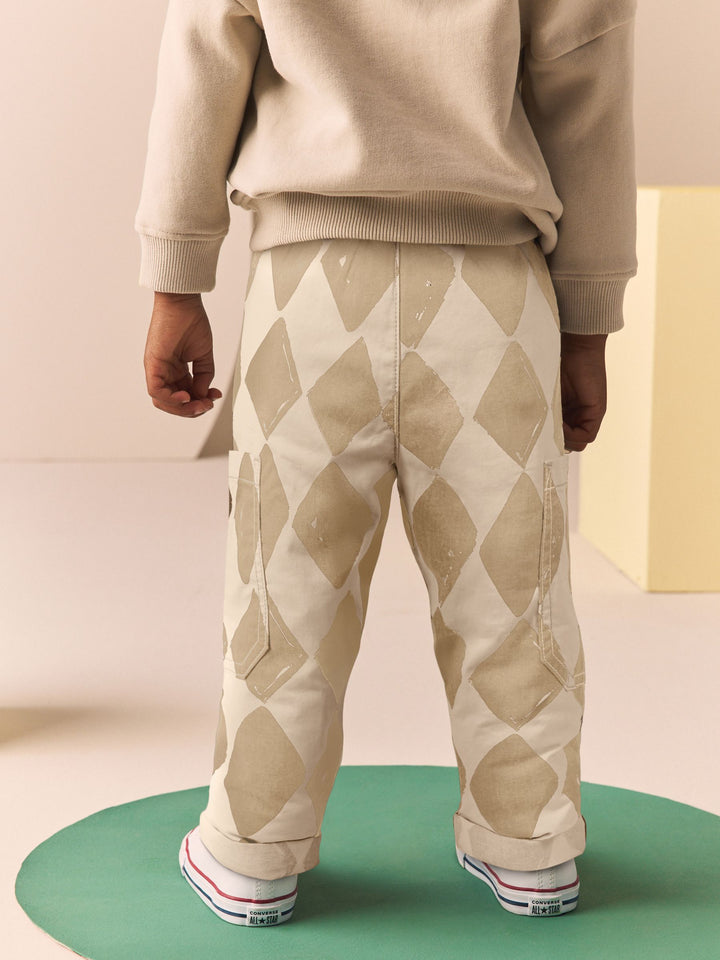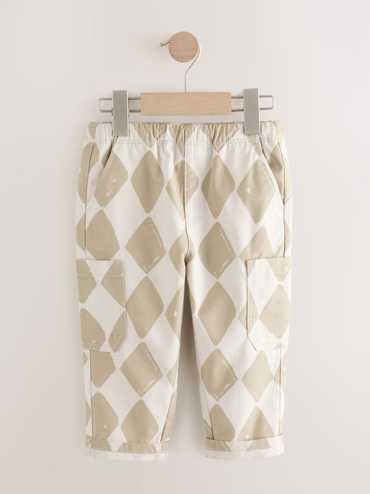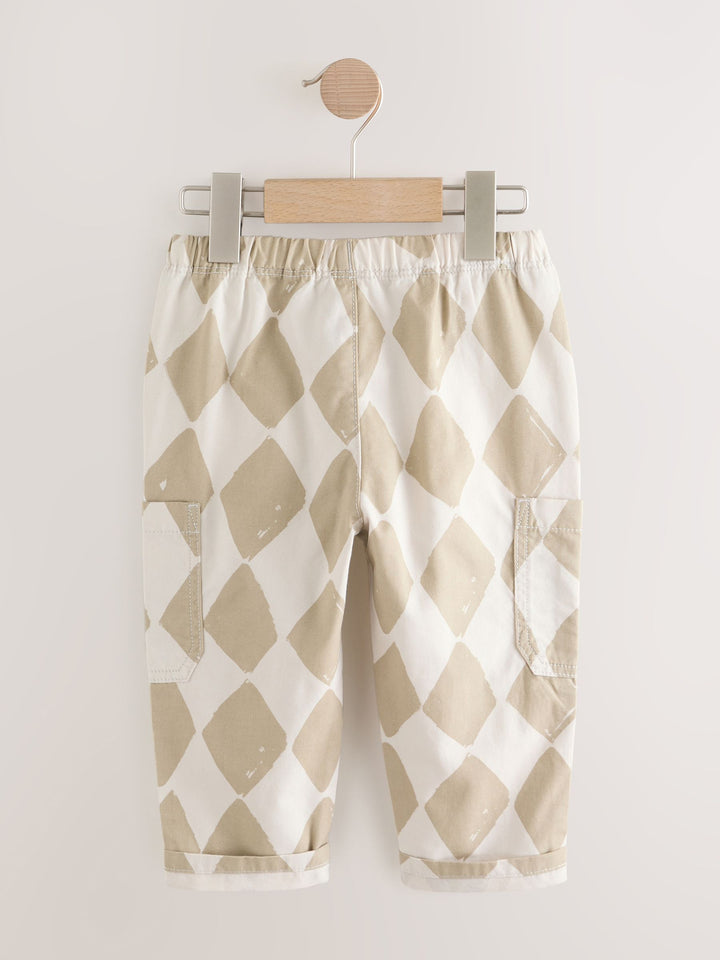 Neutral Cream Check Side Pocket Pull On Trousers (3mths-7yrs)