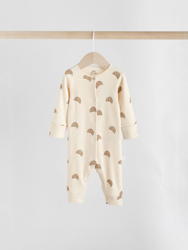 Neutral Croissant Breakfast Baby Footless Sleepsuits 3 Pack (0mths-3yrs)