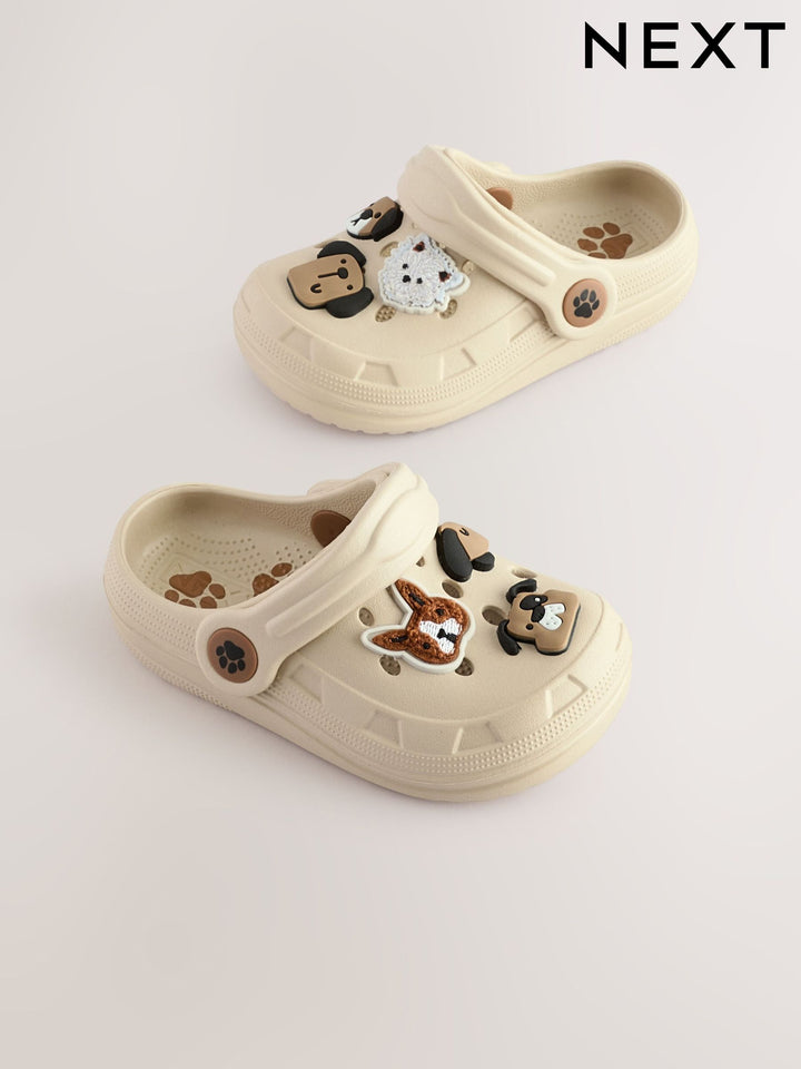 Perfect for busy little feet, our kid's character clogs bring joy to every step. Featuring a fun neutral dog design with adjustable strap so they can easily slip on and hold onto the heel. Perfect for everyday adventures. Character clogs Adjustable strap Lightweight Upper - Other Materials, Lining & Sock - Other Materials, Sole - Other Materials. Country of Origin: China