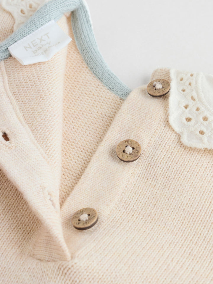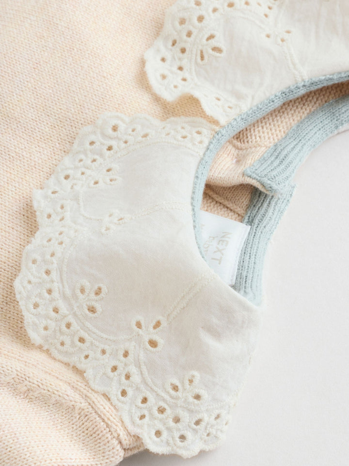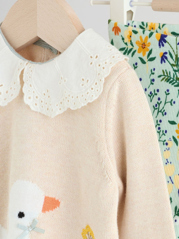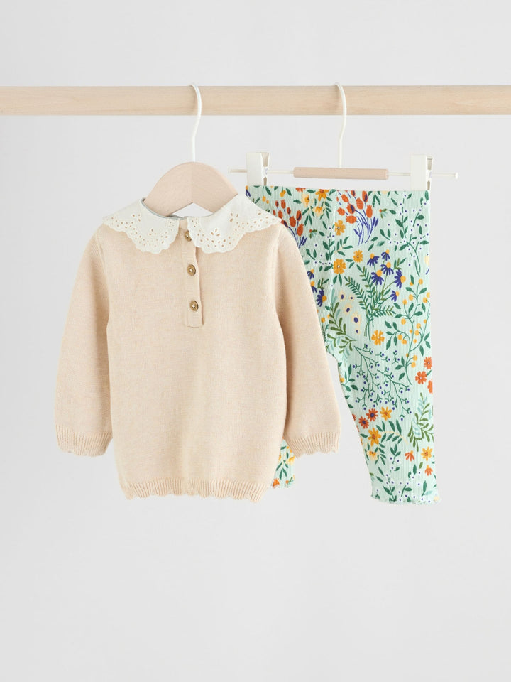 Neutral Duck/ Sage Ditsy Baby Knitted Jumper and Leggings 2 Piece Set (0mths-3yrs)
