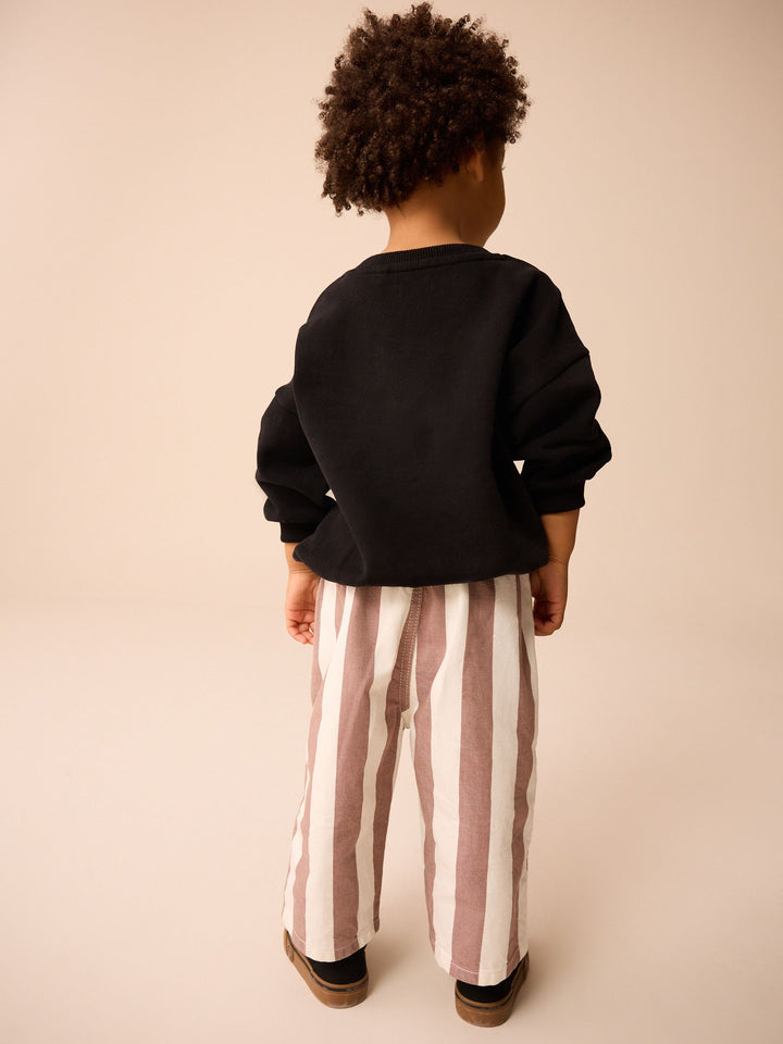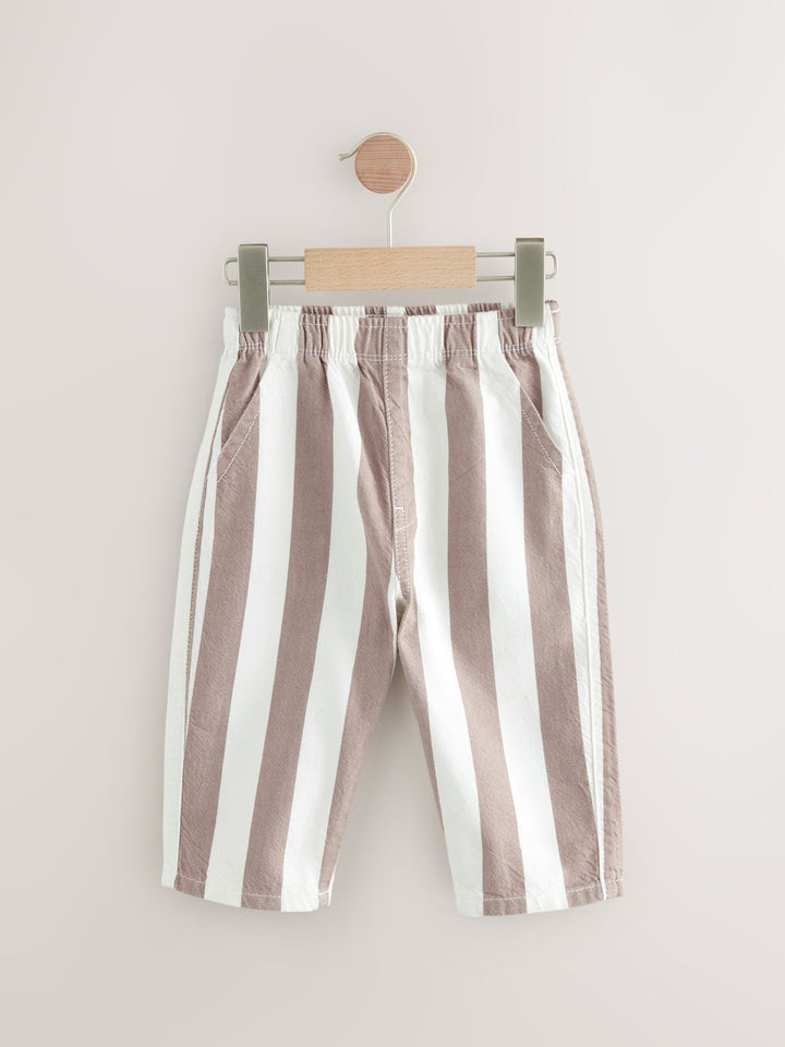 These stylish and easy to wear neutral and ecru stripe trousers are made from pure cotton, featuring a wide leg and an elasticated waistband, finished with side pockets. Perfect for everyday wear, simply pull-on and pair with their favourite sweatshirt. Wide leg 100% cotton Pull-on Elasticated waistband Side pockets 100% Cotton. Country of Origin: Bangladesh