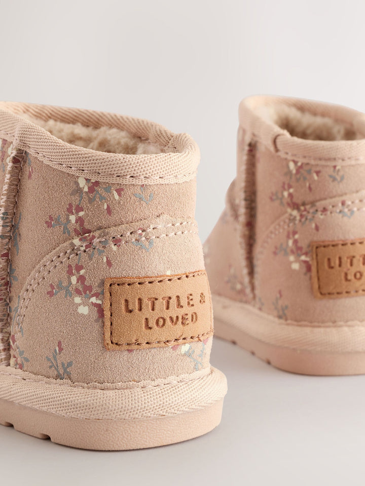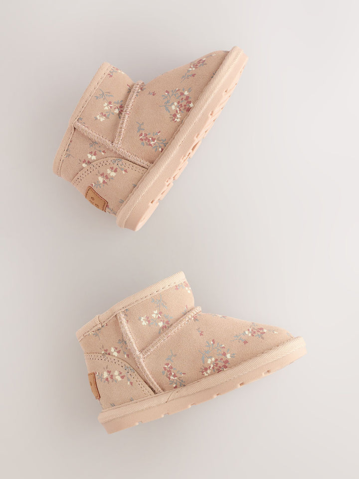 Neutral Floral Water Repellent Standard Fit (F) Suede Pull On Boots