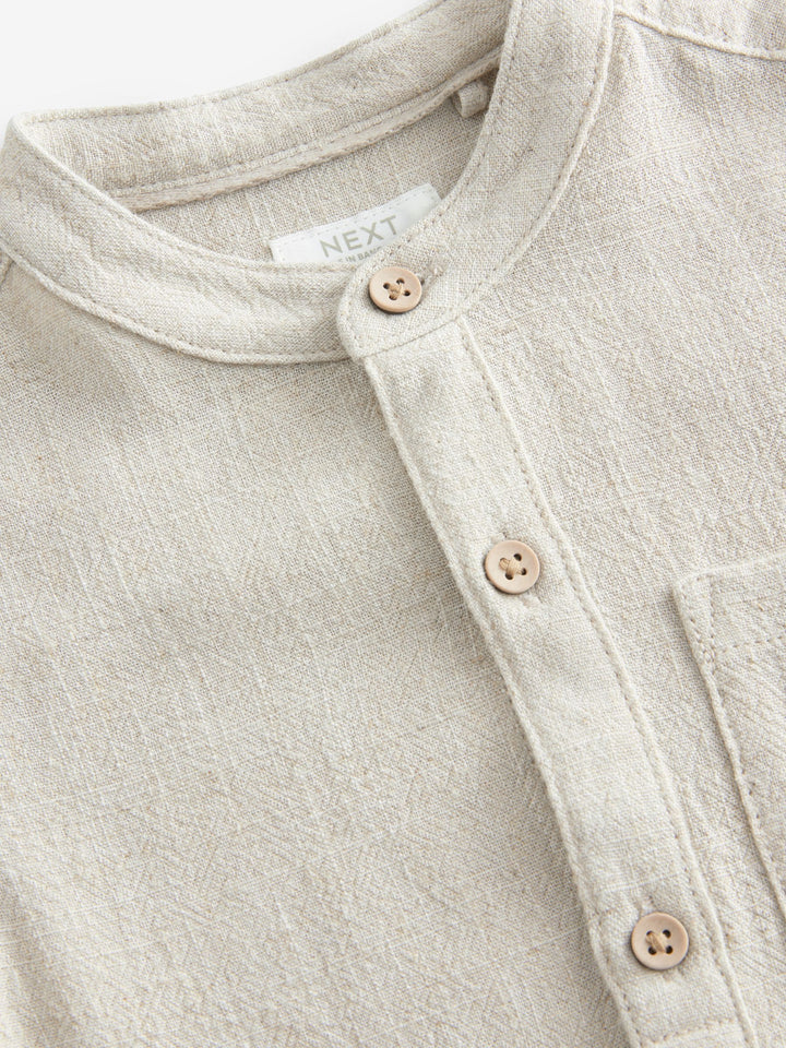 Neutral Grandad Collar Linen Mix Shirt (3mths-7yrs)