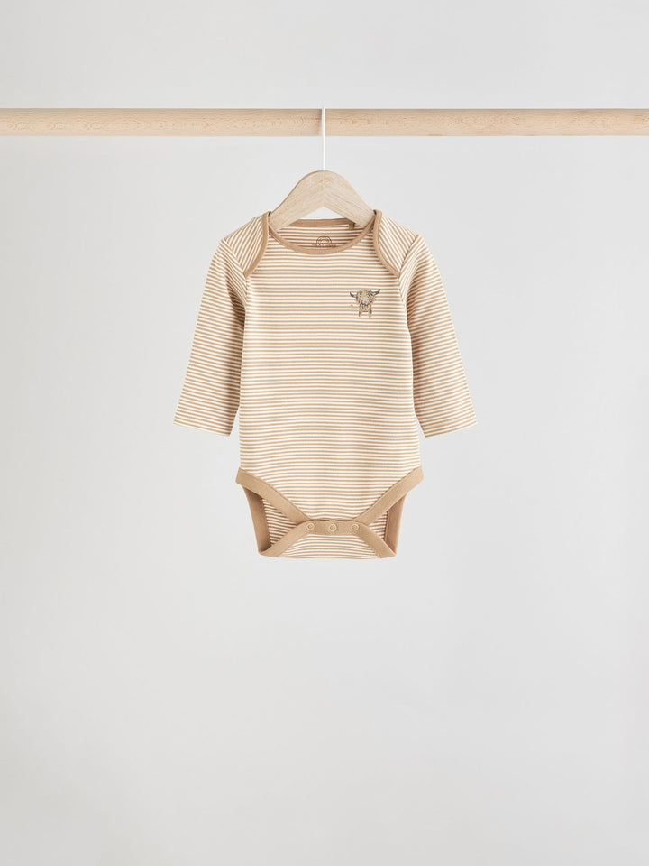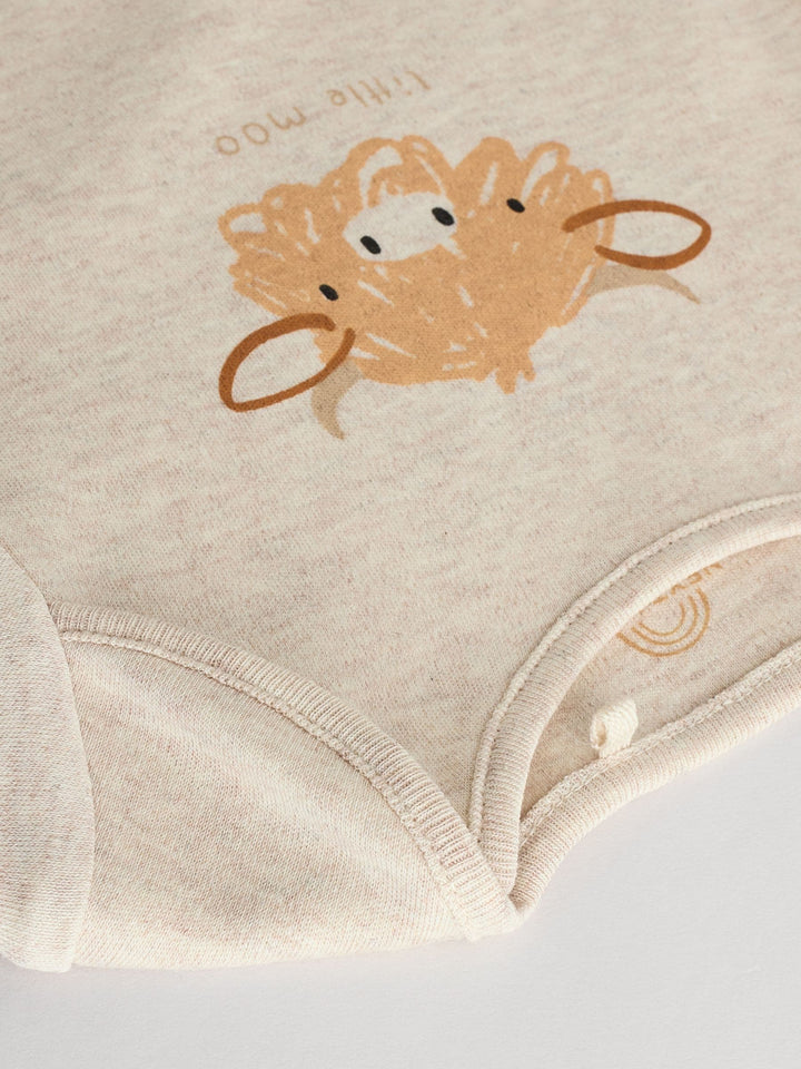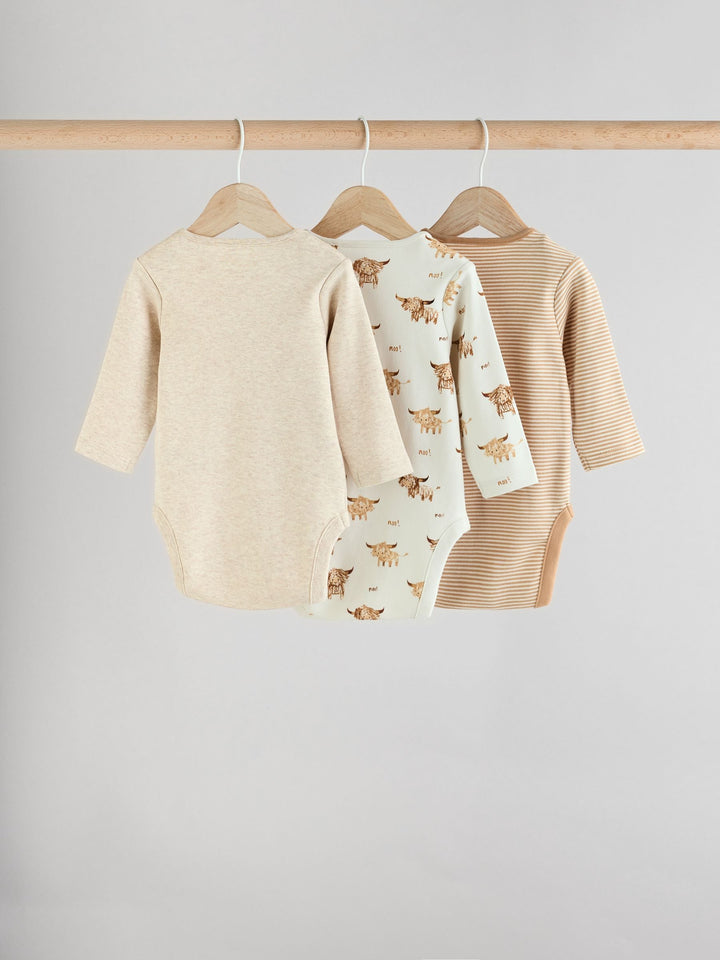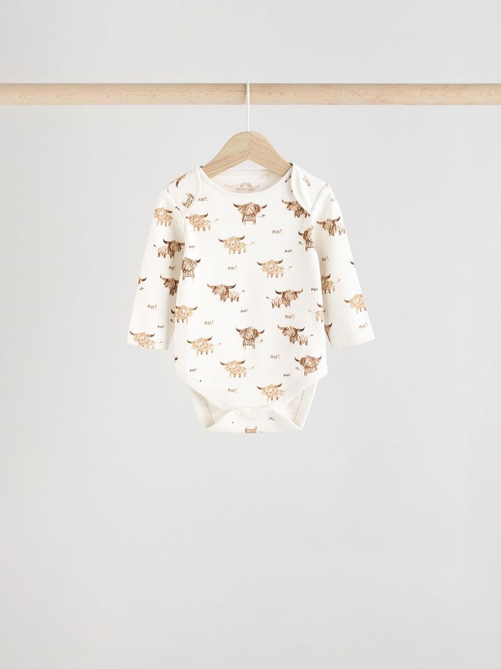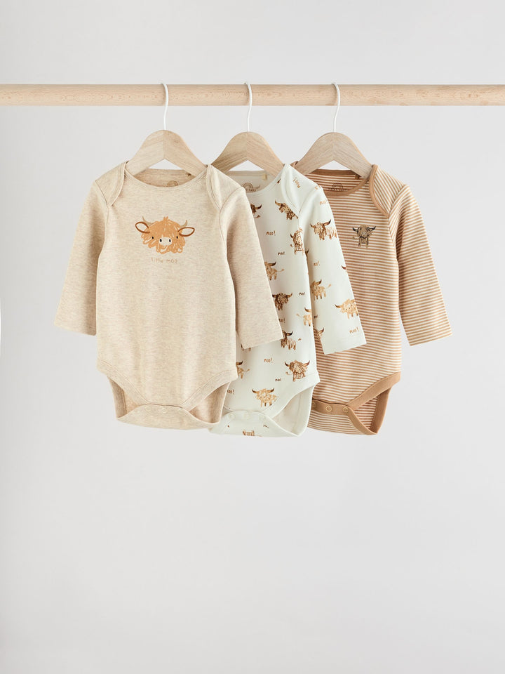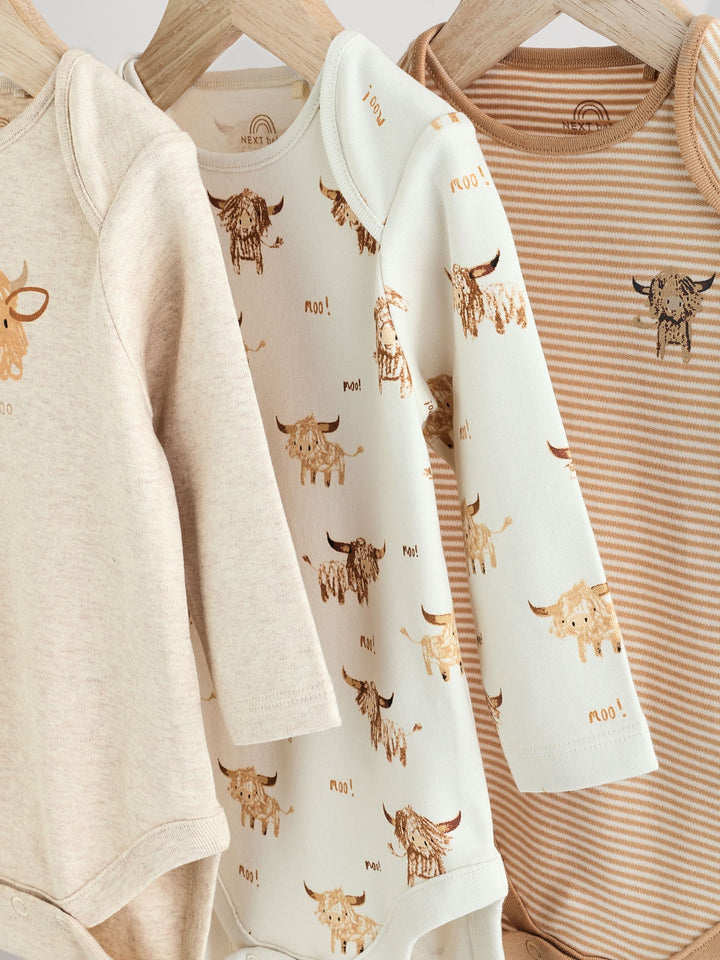 This 3-pack of bodysuits feature our beloved Hamish the Highland Cow as all-over prints and chest prints, made from pure cotton with long sleeves, an envelope neck opening and a popper bottom fastening. 3-pack 100% cotton Long sleeve Hamish the Highland Cow prints Popper bottom fastening Machine washable. 3 x Bodysuit 100% Cotton. Country of Origin: Sri Lanka Warning: Keep away from fire and flames.