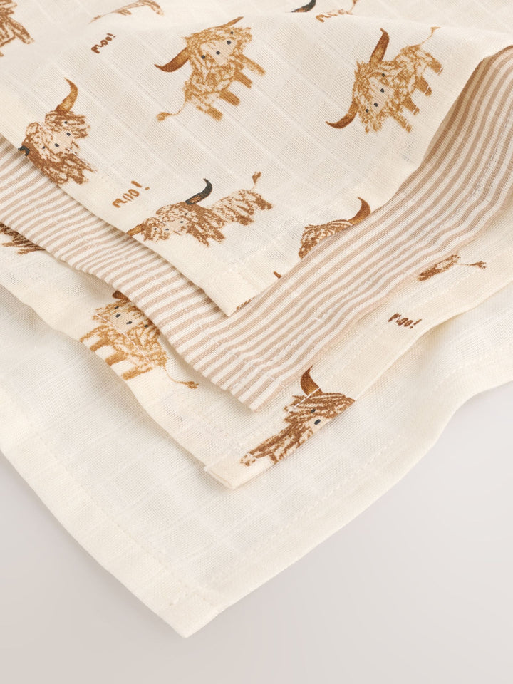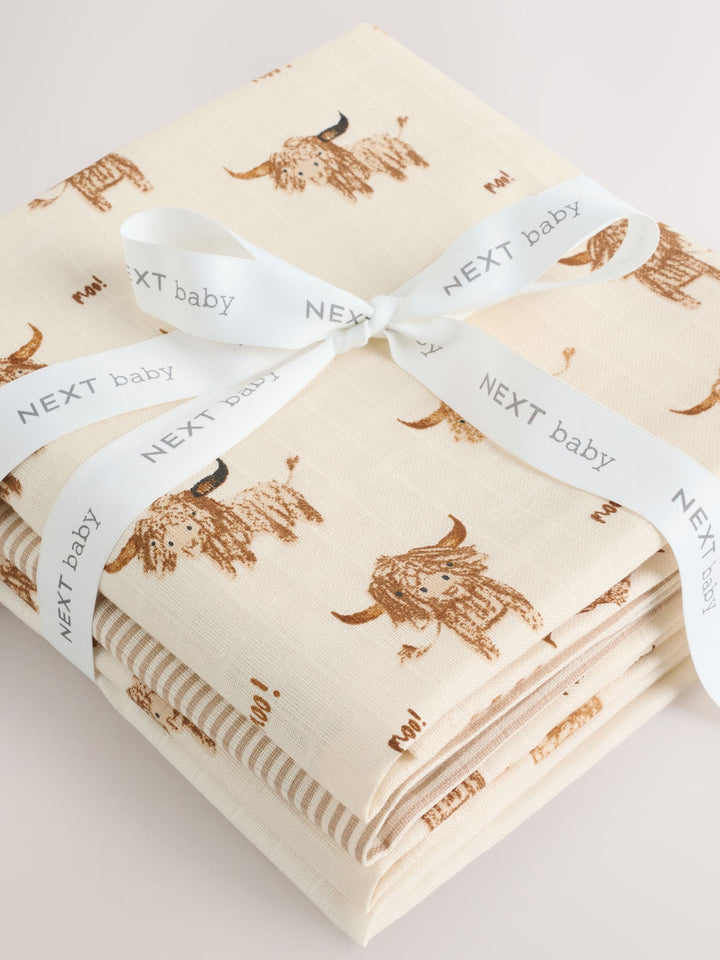 Neutral Hamish the Cow Baby Muslin Cloths 4 Pack
