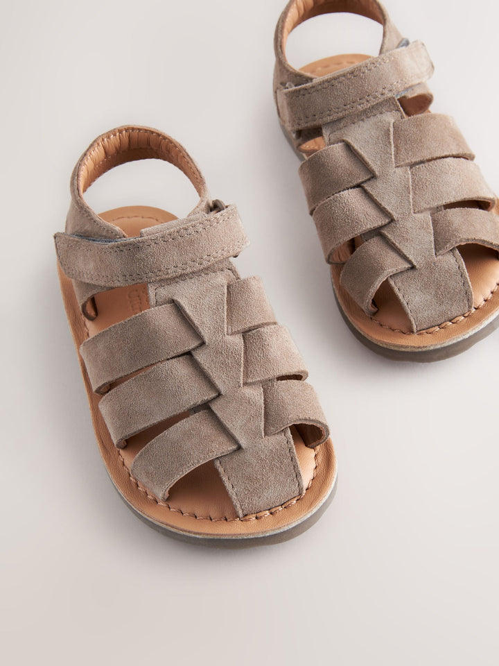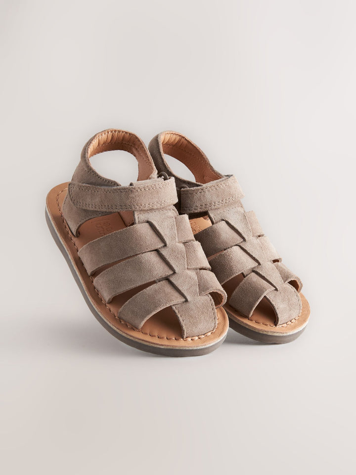 These neutral fisherman-inspired sandals have a strappy leather upper with a touch fastening to the ankle cuff, featuring a smooth leather lined footbed and a durable outsole. Leather strappy upper Touch-fastened strap Smooth leather footbed Durable outsole Upper - Leather, Lining & Sock - Leather, Sole - Other Materials. Country of Origin: India