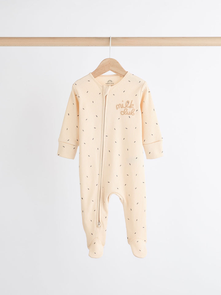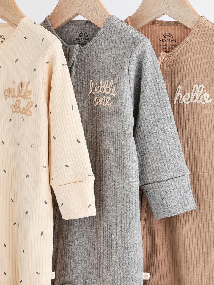 Neutral Milk Club Baby Two Way Zip 100% Cotton Sleepsuits 3 Pack (0mths-2yrs)