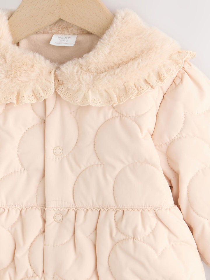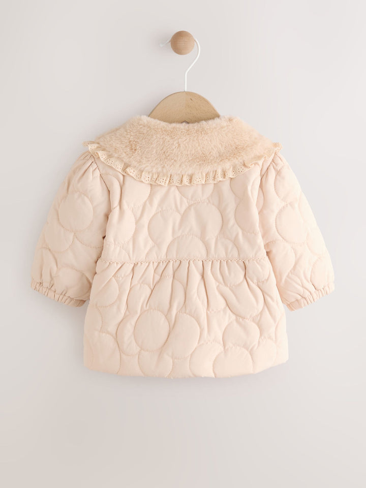 Neutral Oversized Collar Faux Fur Collar Quilted Baby Jacket (0mths-2yrs)