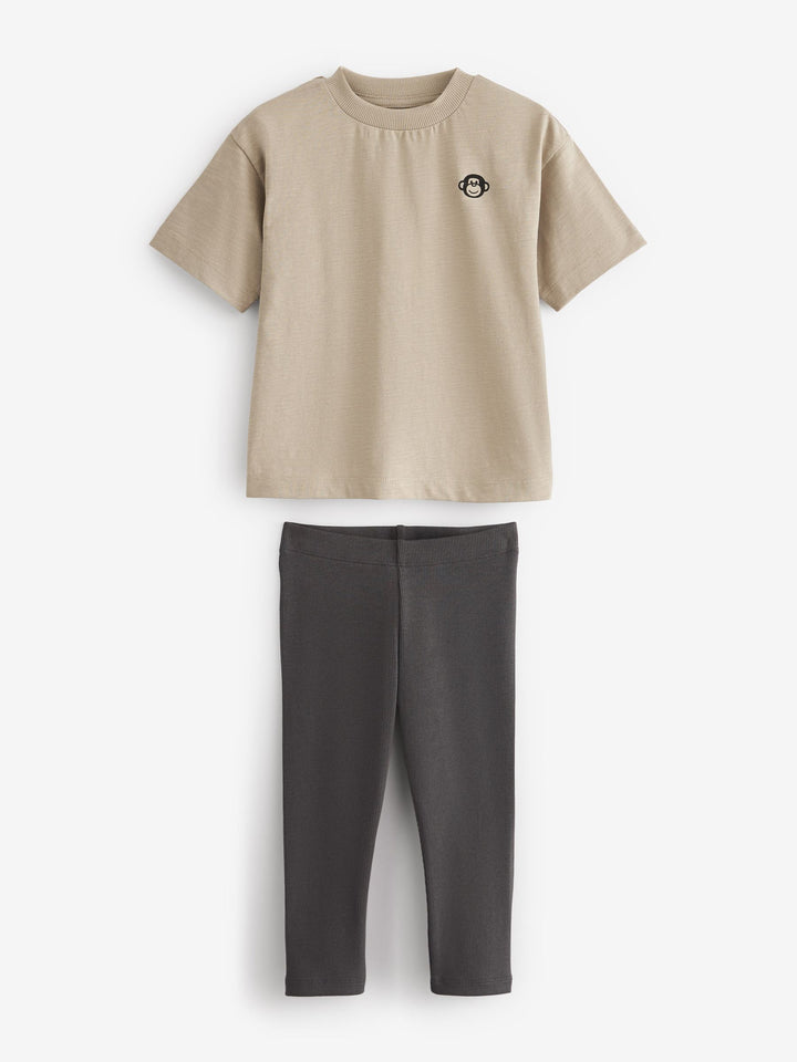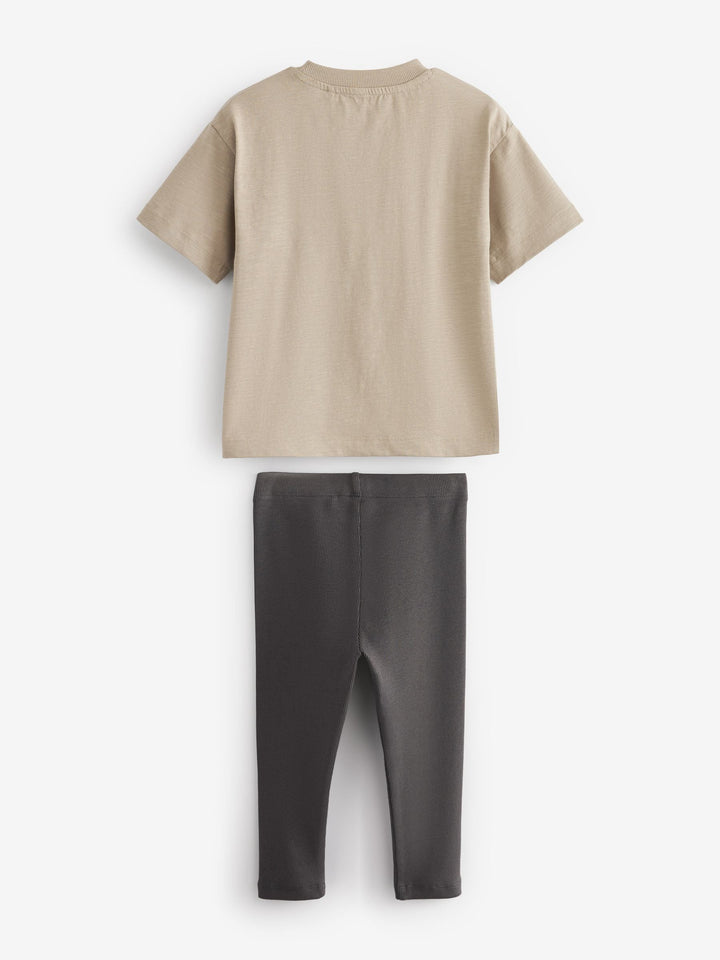 Neutral Oversized Short Sleeves 100% Cotton T-Shirt and Leggings Set (3mths-7yrs)
