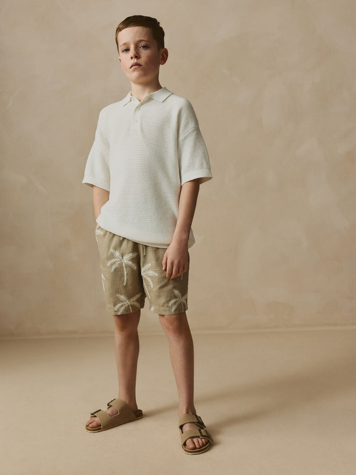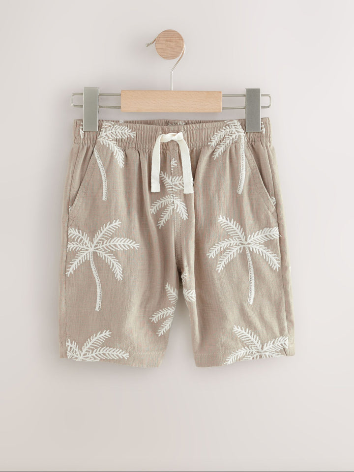 Neutral Palm Trees Textured Pull-On Shorts (3-16yrs)