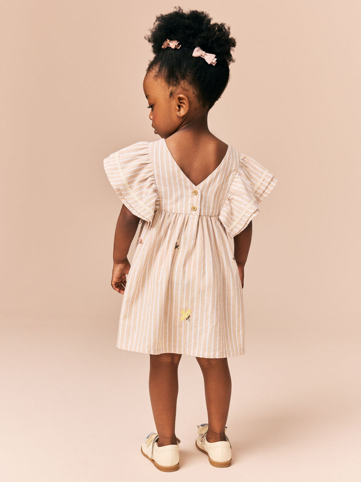 Neutral Stripe Angel Sleeve Summer Dress (3mths-8yrs)