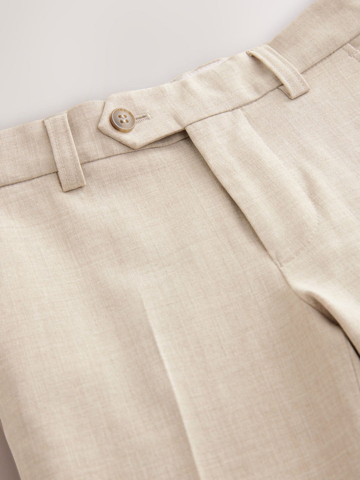 These classic neutral trousers are perfect for matching with a suit or for school, featuring a handy adjustable waist for a comfortable fit. The trousers feature a smart central crease, side slip pockets, button-through welted back pockets and a button and zip fastening. Adjustable waist Smart central crease Side slip pockets Button-through rear pockets Machine washable. 62% Polyester, 33% Viscose, 5% Elastane. Country of Origin: Vietnam