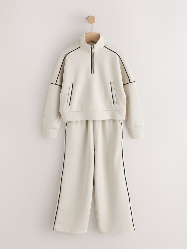 Neutral Supersoft Zip Neck Crew and Wide Leg Joggers Set (3-16yrs)