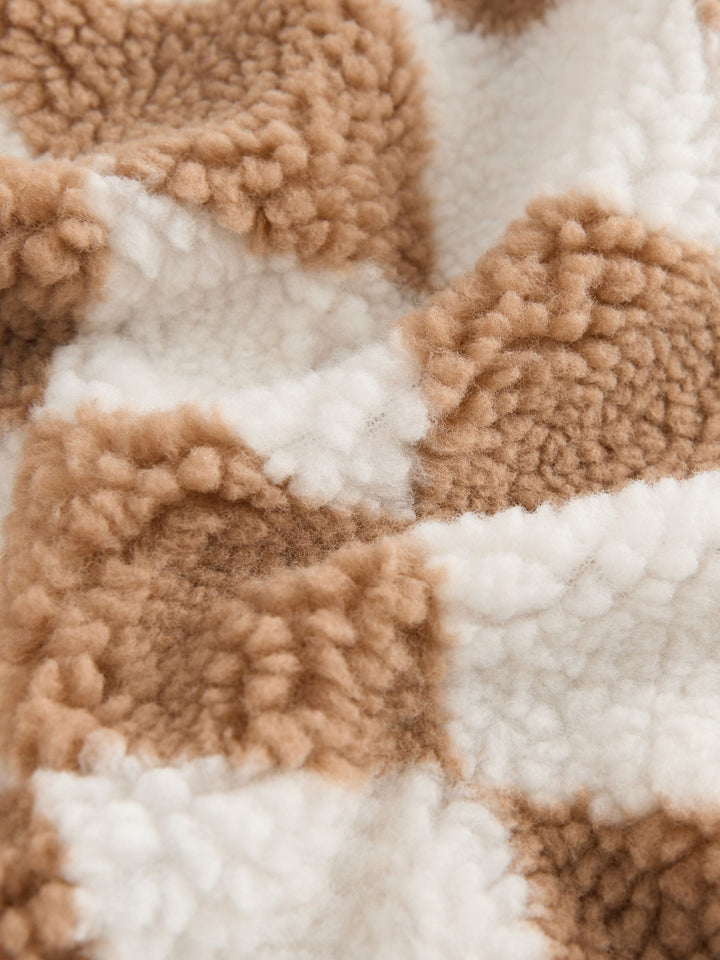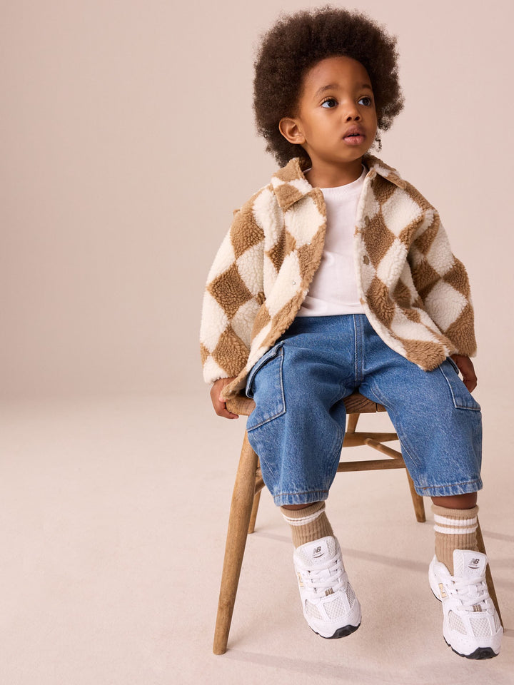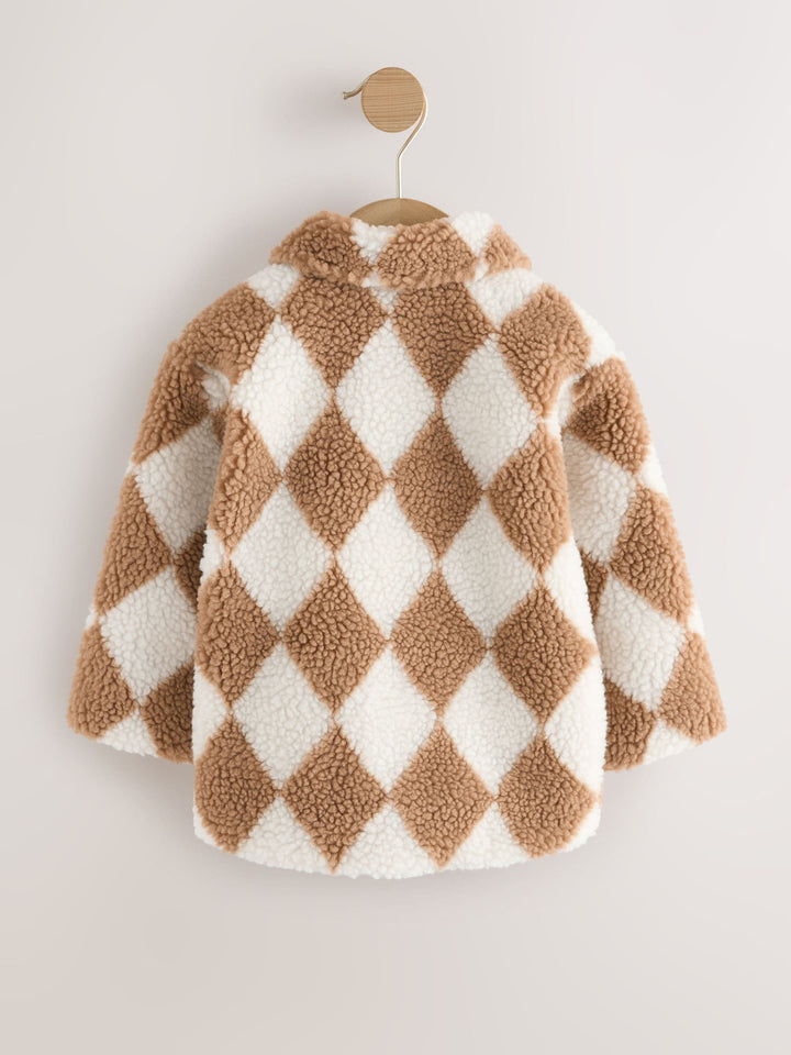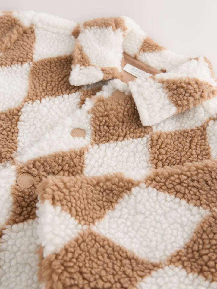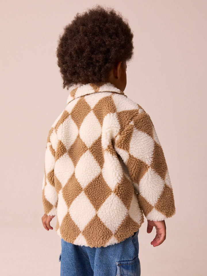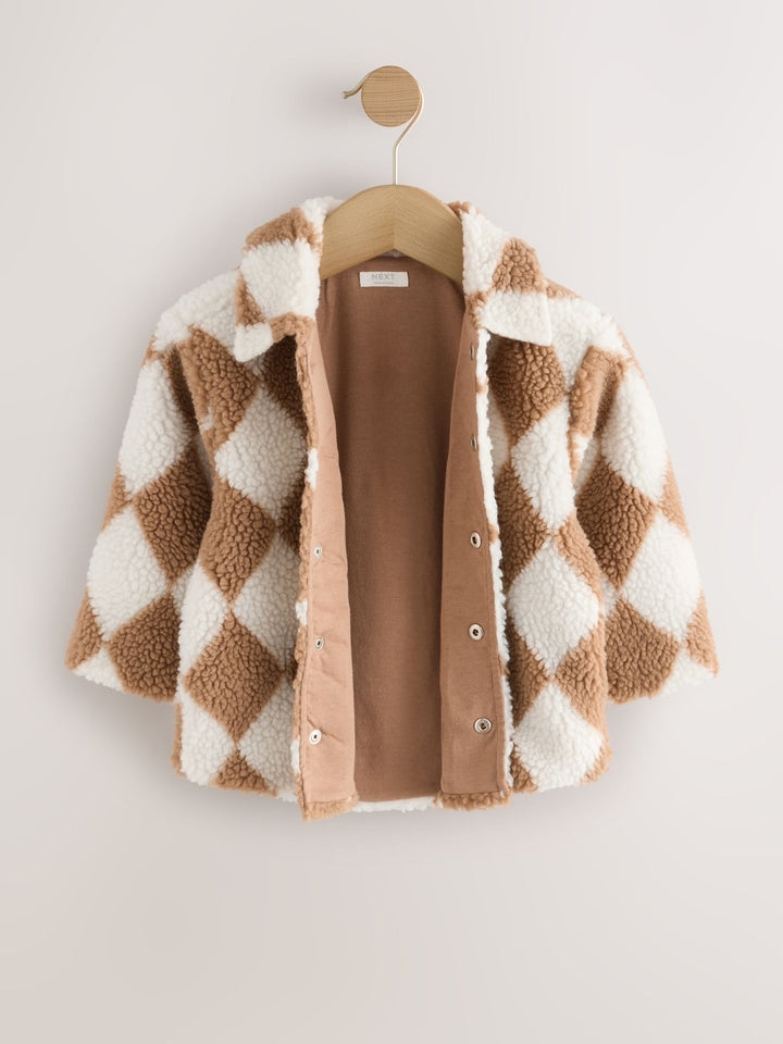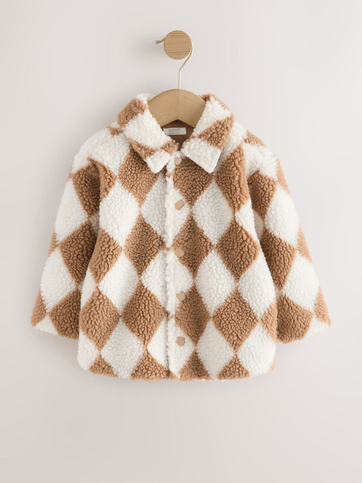 Neutral/Tan Harlequin Borg Fleece Shacket (3mths-7yrs)