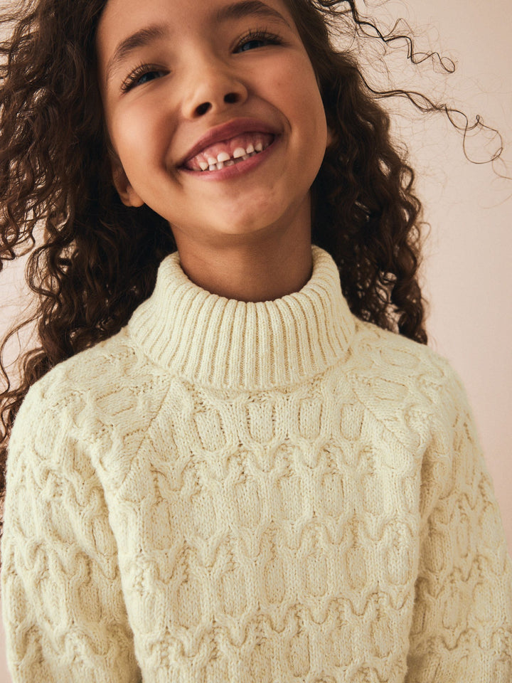 Oatmeal Cable Roll Neck Jumper (3-16yrs)