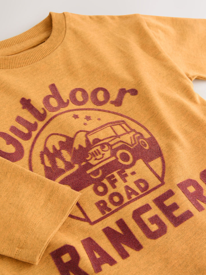 Ochre Yellow Outdoor Ranger Long Sleeve Graphic Print T-Shirt (3mths-8yrs)