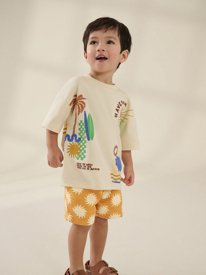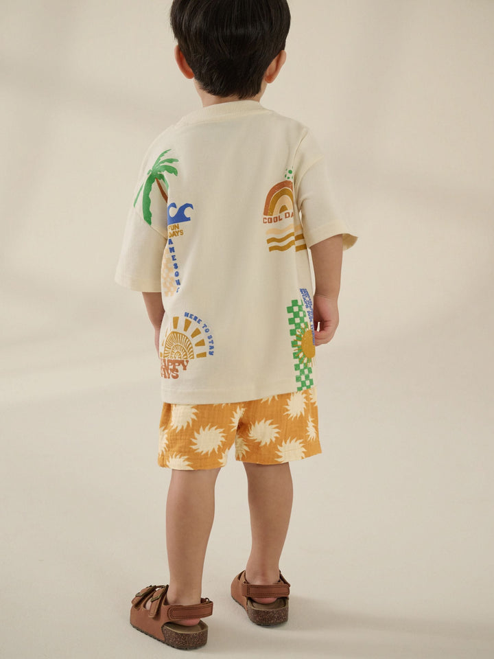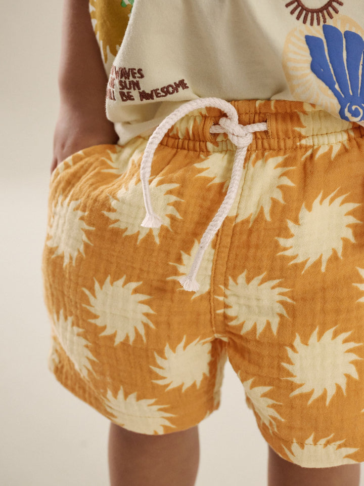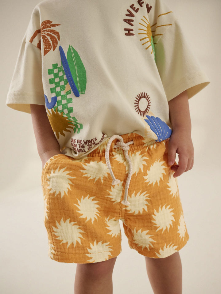 Ochre Yellow Printed Soft Textured Pull On Shorts (3mths-7yrs)