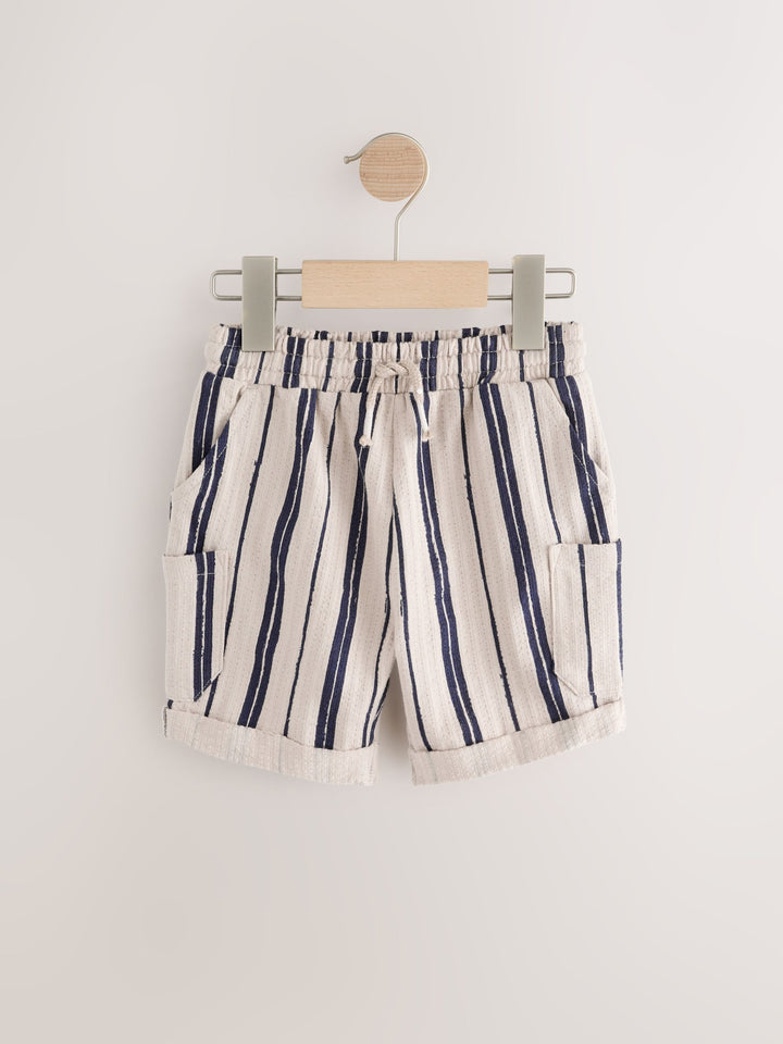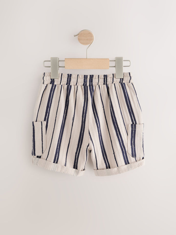 Off White/ Navy Blue Stripe Lightweight Textured Shorts (3mths-7yrs)