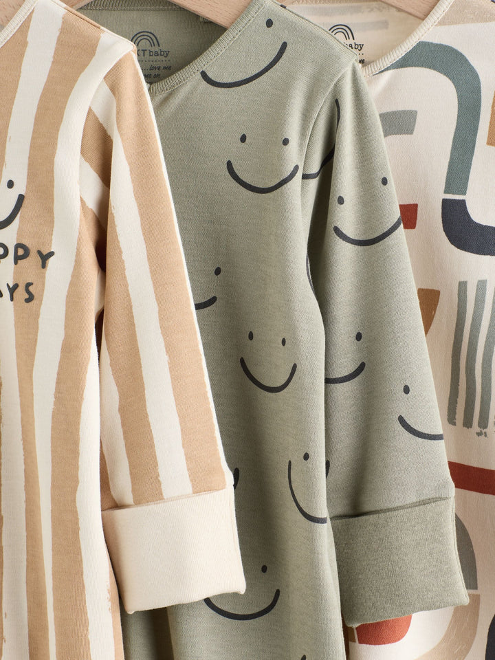 Olive Green 3 Pack Baby Sleepsuits (0-3yrs)
