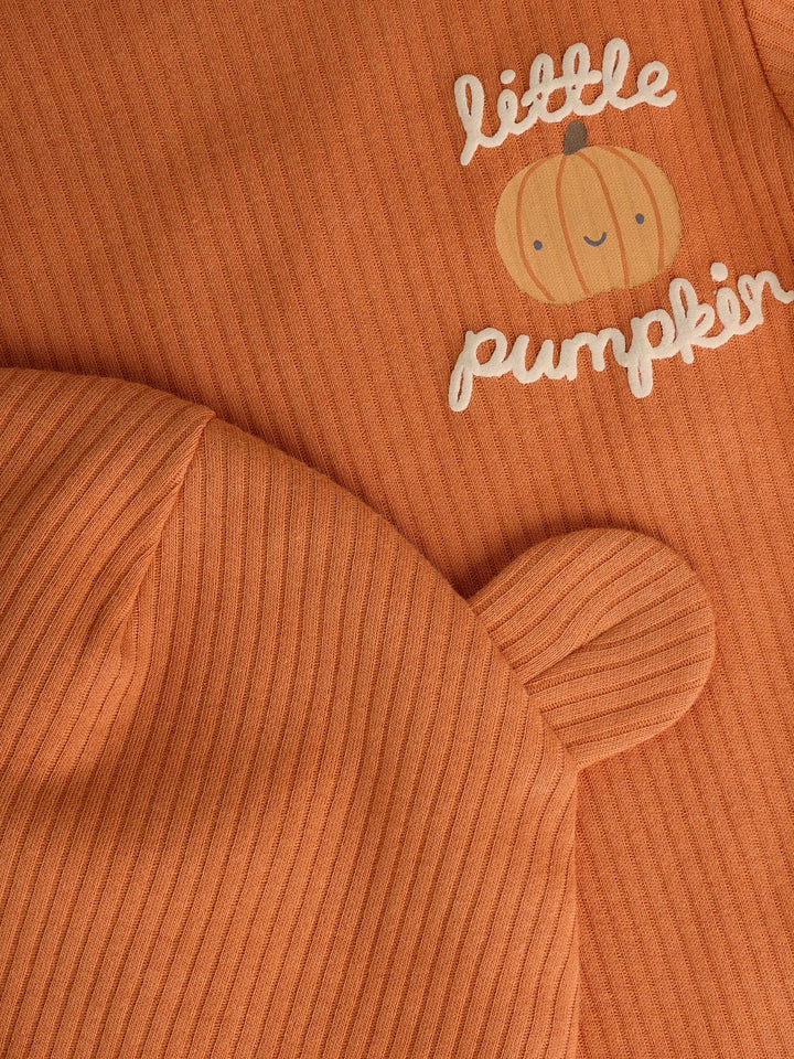 Orange Baby Long Sleeve Halloween Bodysuit and Hat Set