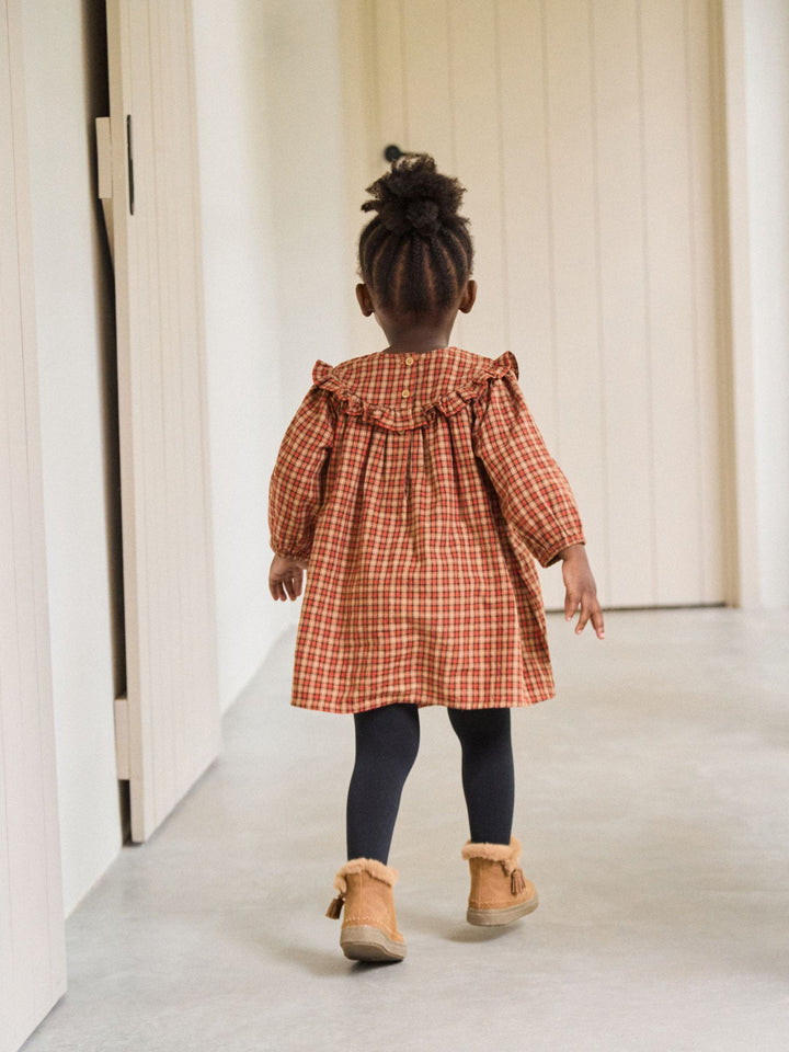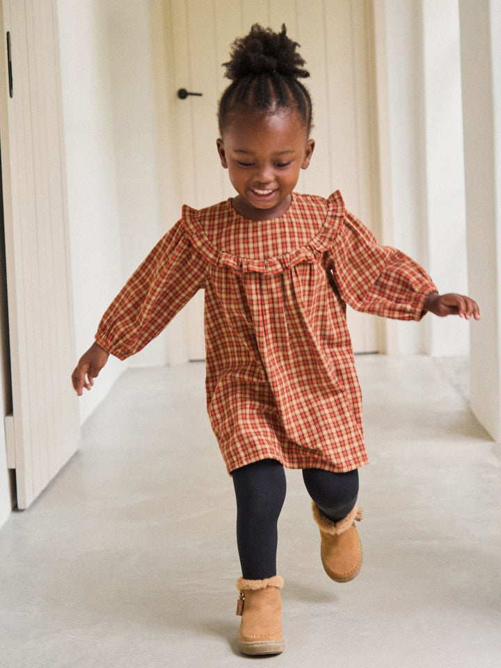 Orange Check Frill Long Sleeve Dress (3mths-8yrs)