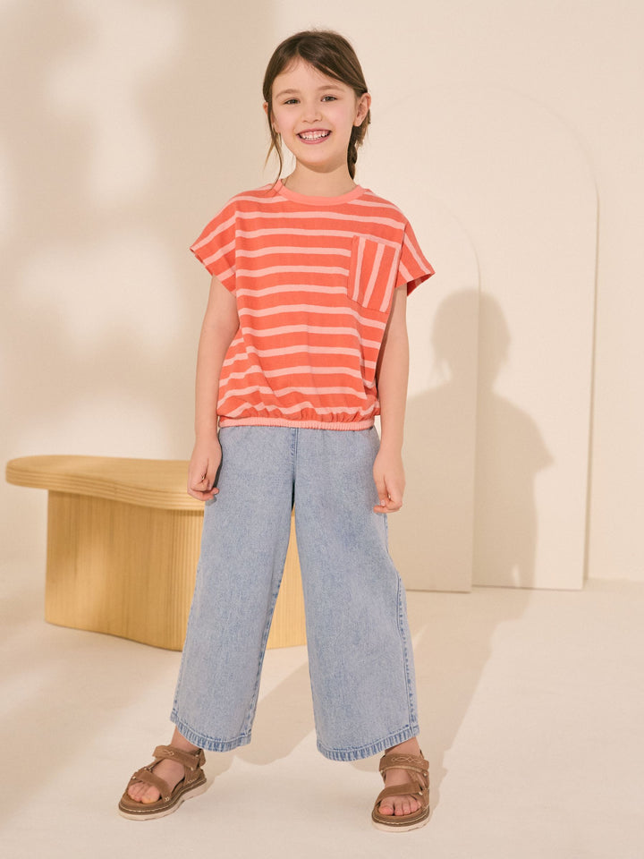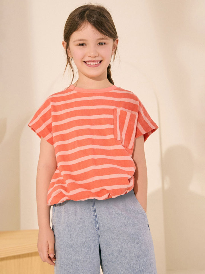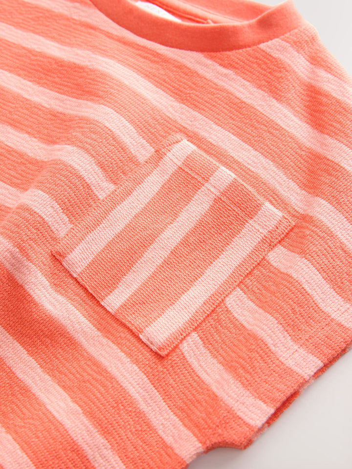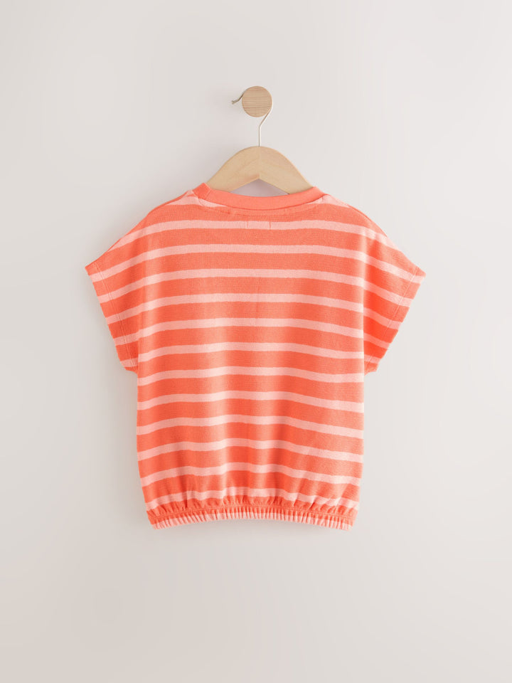 Orange Textured Stripe Boxy 100% Cotton T-Shirt (3-16yrs)