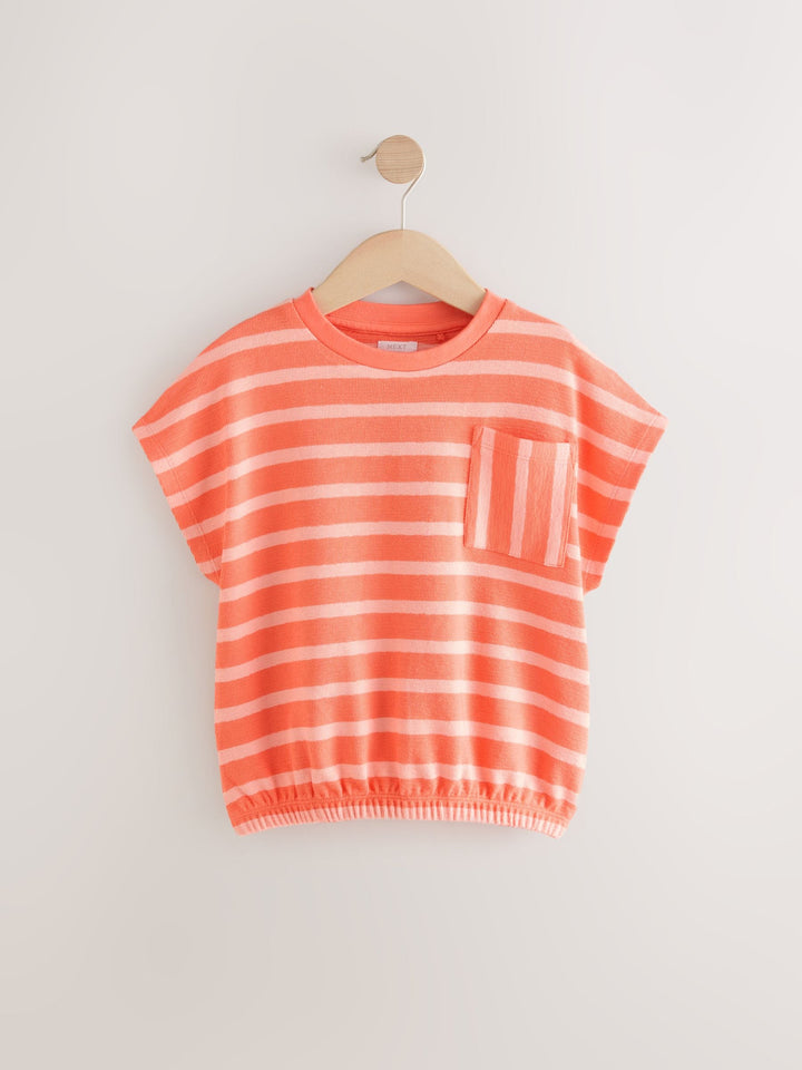 Our orange stripe t-shirt is made from pure cotton and cut in a relaxed boxy fit. In a timeless stripe print with a textured finish, it's complete with a chest pocket. 100% cotton Stripe design Boxy fit Chest pocket Machine washable. 100% Cotton. Country of Origin: India