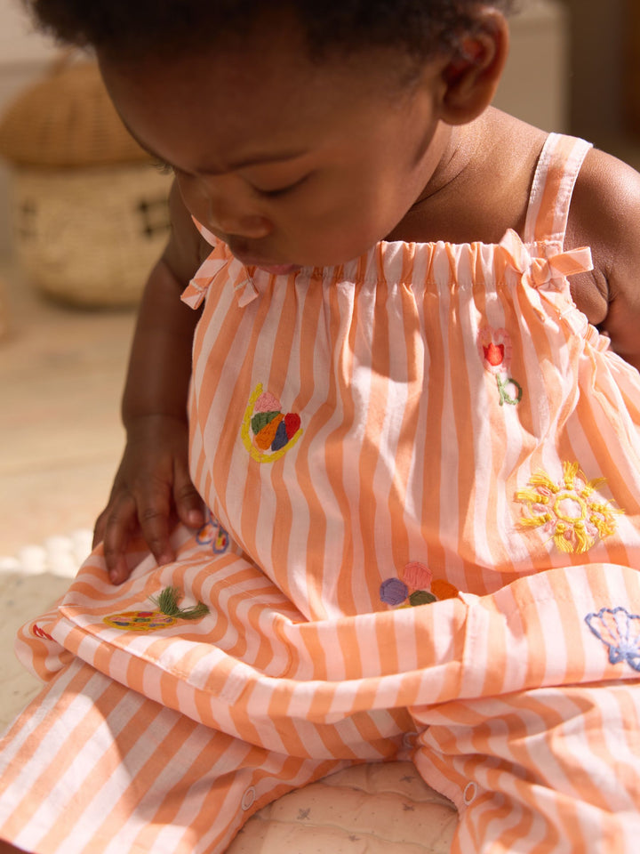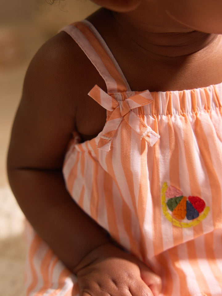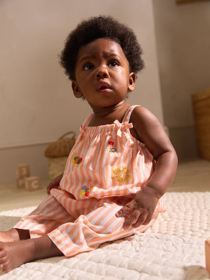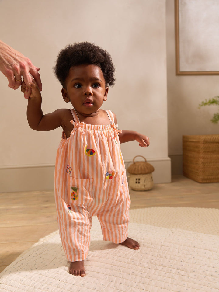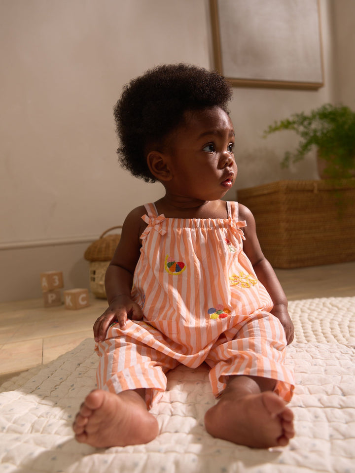Orange/ White Stripe Baby 100% Cotton Woven Dungarees (0mths-3yrs)