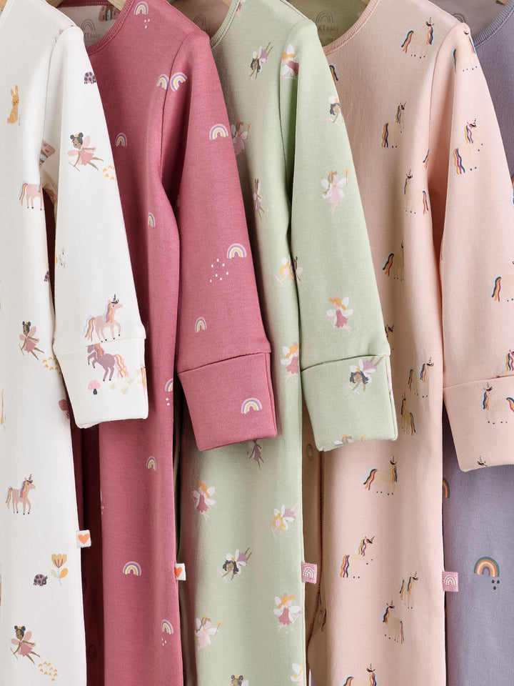 Pastel Character 5 Pack Baby Sleepsuits (0-2yrs)