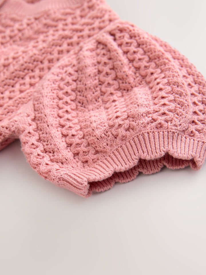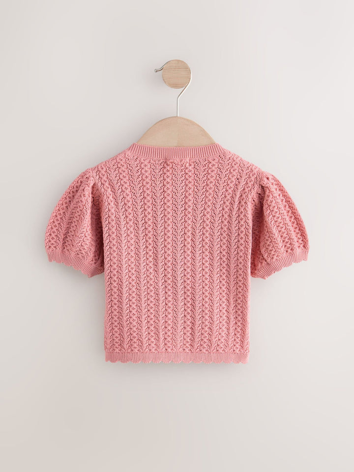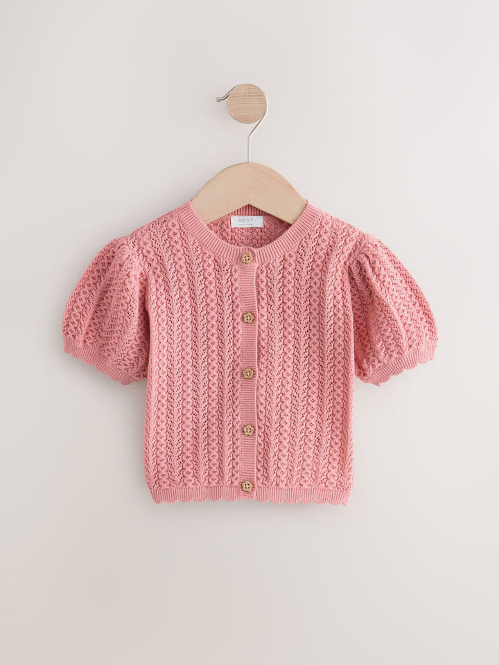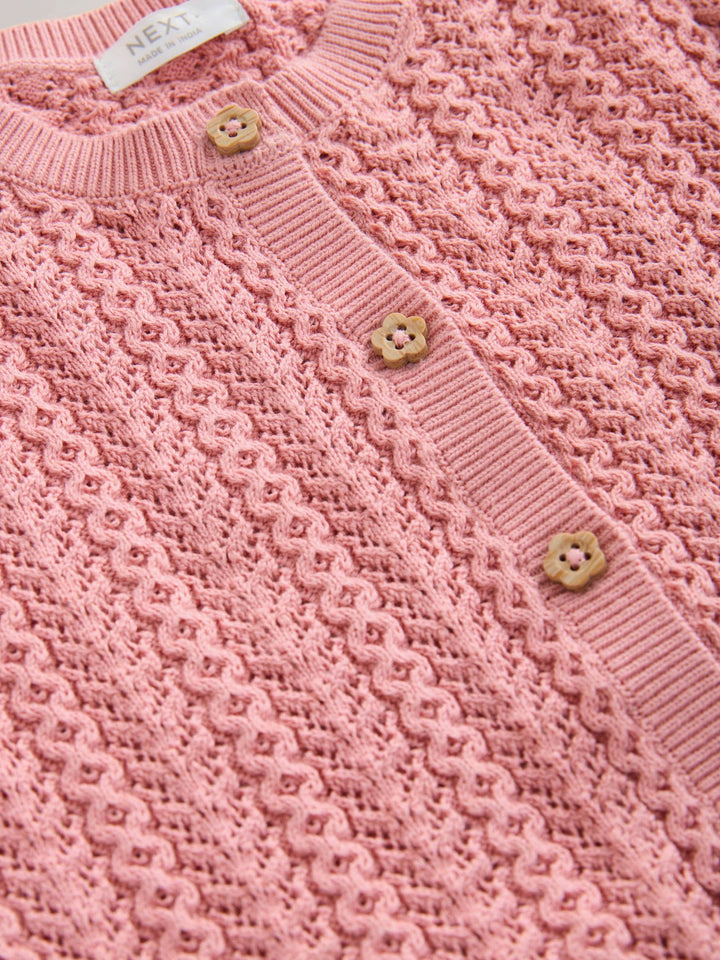 Pink 100% Cotton Pointelle Knitted Cardigan (3mths-7yrs)