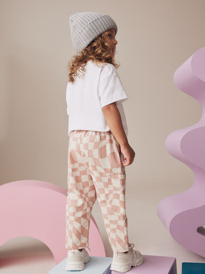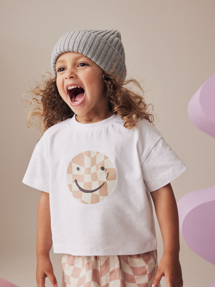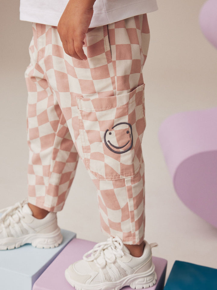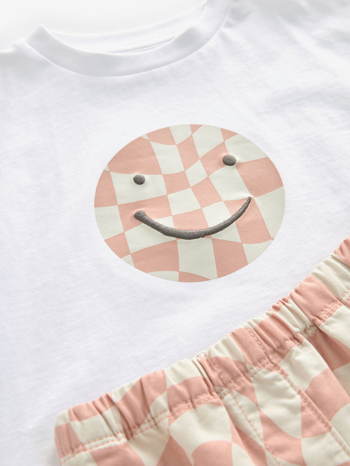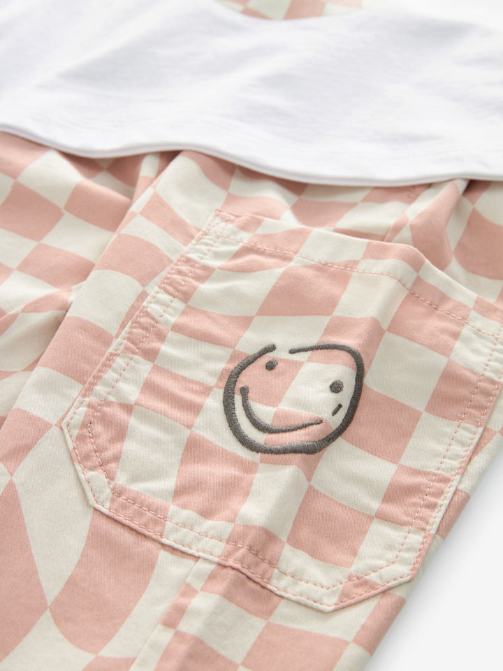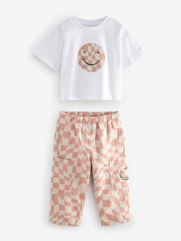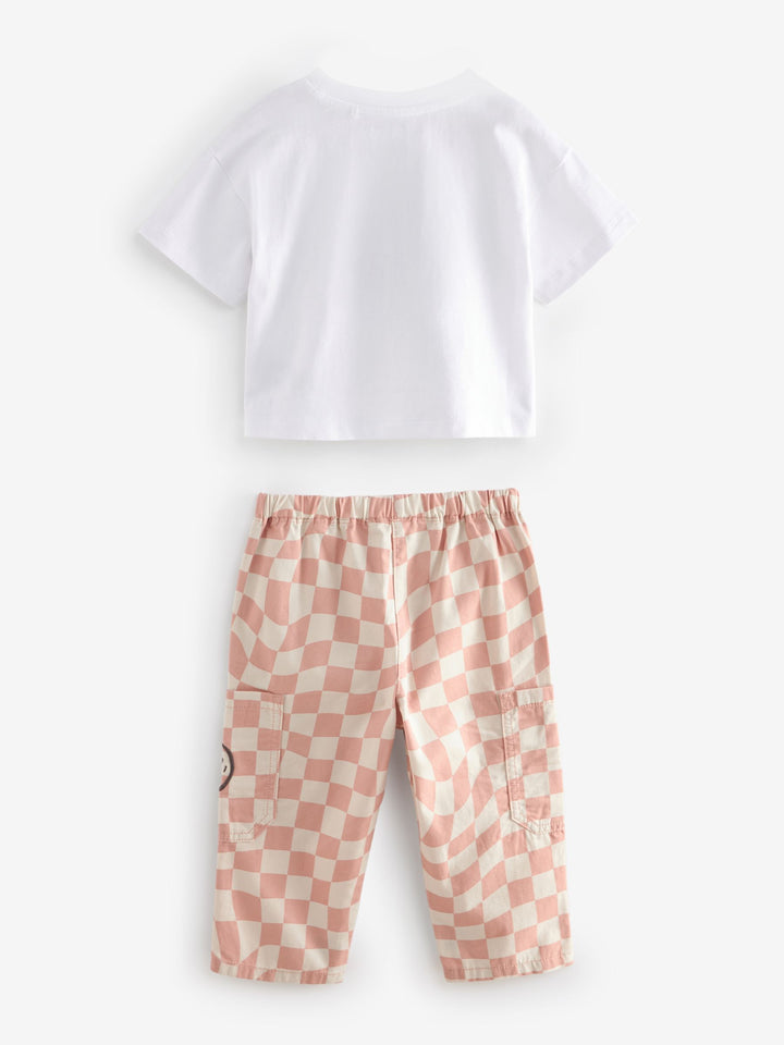 She'll love this ultra cool skater-inspired 2-piece set, featuring a short sleeve cotton t-shirt with a checkered smiley face print, alongside a pair of checkered trousers with an elasticated waistband and cargo pockets. 2-piece set Relaxed fit Short sleeve t-shirt Checkered smiley face graphic Matching trousers Elasticated waistband Cargo pockets Trouser and T-shirt 100% Cotton. Country of Origin: Bangladesh Better Cotton - By choosing our cotton products, you're supporting our investment in Better Cotton's mission to help cotton farming communities survive and thrive while protecting and restoring the environment. This product is sourced via a system of mass balance and therefore may not contain Better Cotton. Learn more at www.next.co.uk/better-cotton